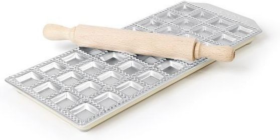 Numer producenta: 975534- Forma na klasyczne ravioli - Forma z odlewu aluminium - Podstawa ze stali lakierowanej - Na gumowych nóżkach -36 form 30x30x(H)8mm - Wałek drewniany w zestawie - Nie można myć w zmywarkach Parametry: wymiary: 320x137x(H)18mm W zestawie: - forma na klasyczne ravioli - wałek Nasze urządzenia posiadają deklarację zgodności CE niezbędną dla Sanepidu.