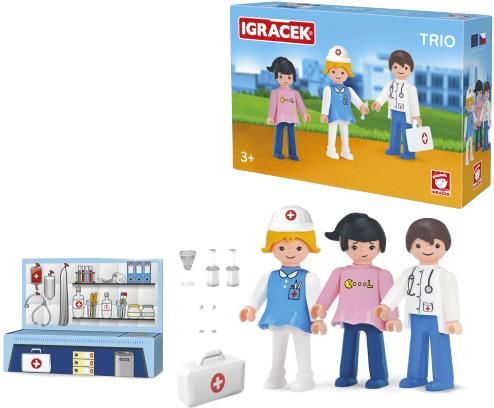 Multigo 26212 Igracek u lekarza figurki 3szt - lekarz, pielęgniarka, pacjent Tradycyjny IGRÁČEK produkowany przez czeską firmę EFKO jest niezastąpiony wśród zabawek od kilku pokoleń. Zabawa w zawody jest jedną z najpopularniejszych zabaw dla dzieci, dzięki której dzieci mogą poznać prawdziwy świat …