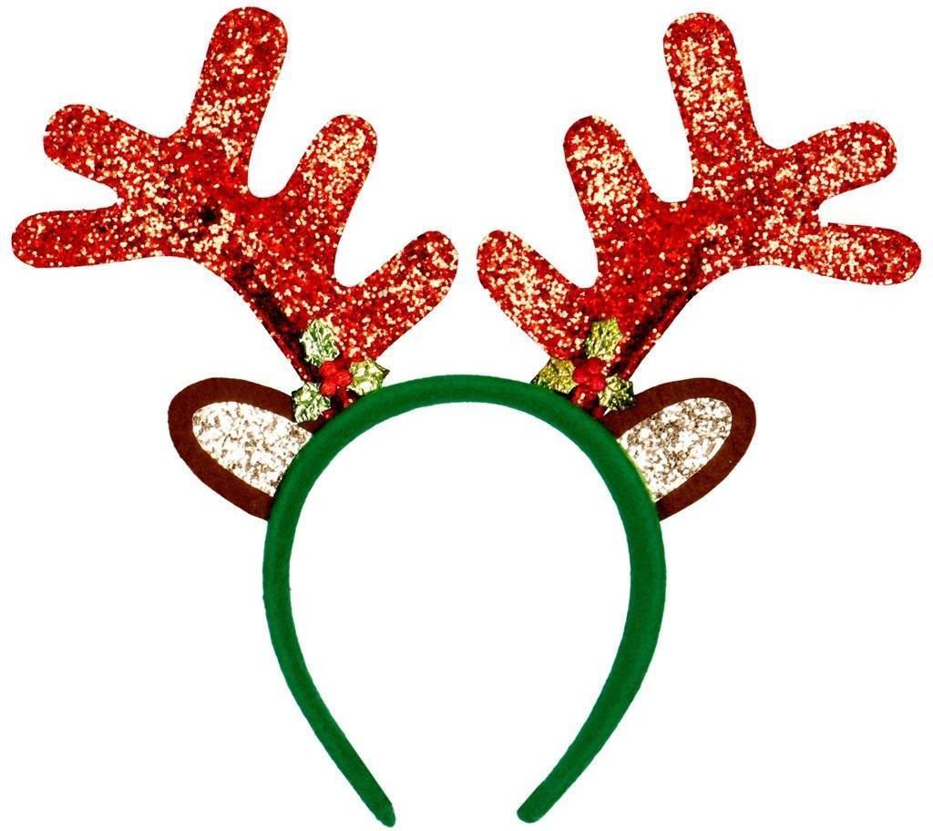 Świąteczna opaska z rogami renifera. Ozdobiona pięknymi rogami – wykończone brokatowym materiałem. Sama opaska pokryta miękką tkaniną. Bardzo efektowny element, który wprowadzi świąteczny klimat. Wymiary: szerokość samej opaski: 10 cm ( elastyczna, rozciąga się do max. ok 16 cm) wysokość samej opaski: 13 cm szerokość całej opaski z rogami: 25 cm wysokość opaski z rogami: 27 cm