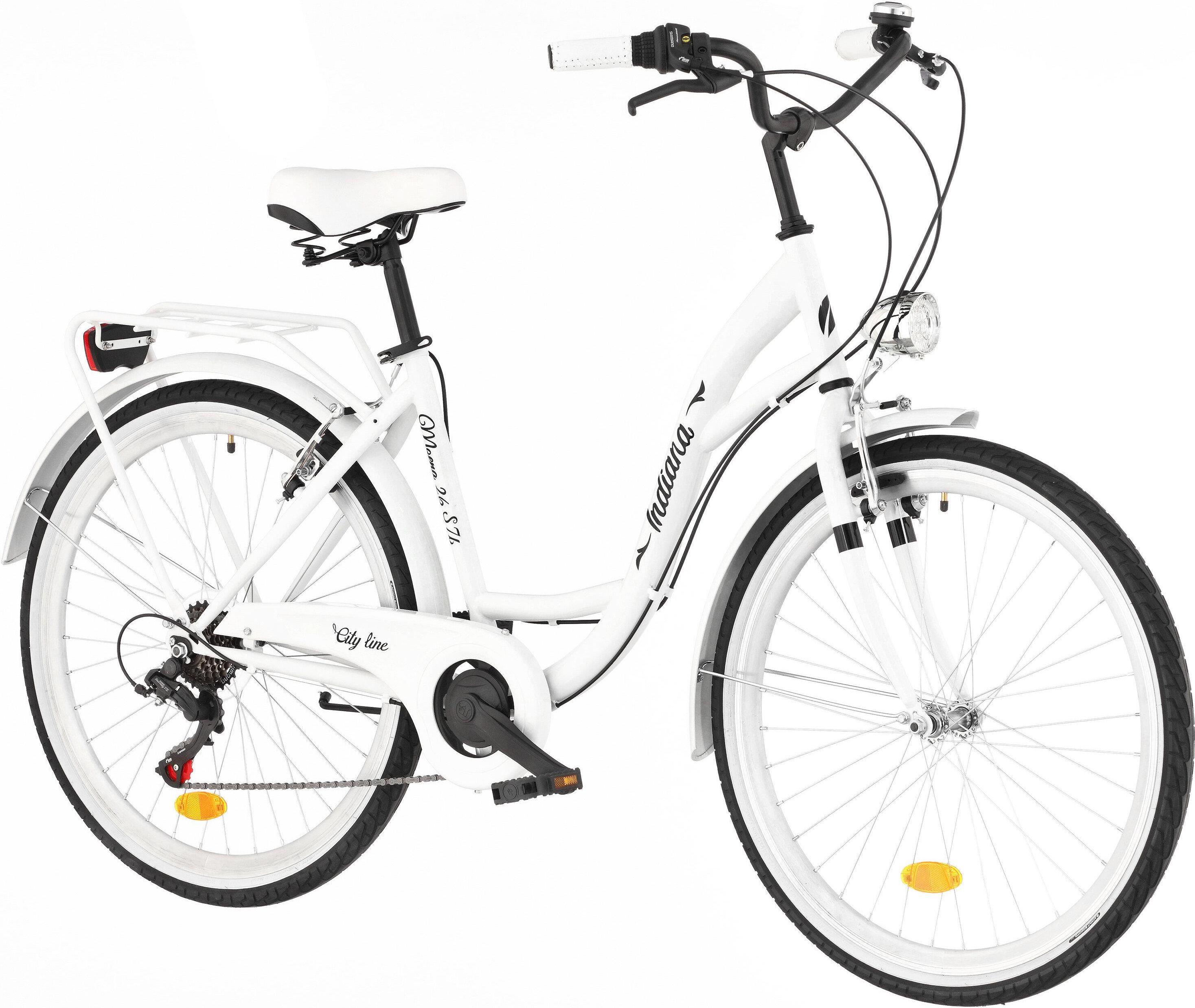 Indiana Moena S7B Biały 26 2024 Indiana Moena S7B to nowoczesny rower miejski, który łączy w sobie styl i funkcjonalność. Zaprojektowany z myślą o kobietach, ten model oferuje wygodę i komfort podczas codziennych dojazdów. Dzięki solidnej konstrukcji oraz przemyślanej specyfikacji, Indiana Moena jest idealnym wyborem dla osób, które cenią sobie jakość i estetykę. Specyfikacje techniczne Ten rower wyróżnia się stalową ramą, która zapewnia wytrzymałość i stabilność podczas jazdy w miejskim zgiełku. Wyposażony jest w 7-biegową przerzutkę wewnętrzną, co umożliwia płynne i komfortowe zmiany biegów, dostosowując je do warunków jazdy. Warto zwrócić uwagę na brak amortyzacji, co czyni go idealnym wyborem dla osób, które głównie poruszają się po utwardzonych nawierzchniach. Waga i typ roweru Z wagą 16,5 kg, ten rower należy do kategorii rowerów miejskich, co czyni go odpowiednim rozwiązaniem dla codziennych dojazdów do pracy lub na zakupy. Dzięki konstrukcji o rozmiarze kół wynoszącym 26 cali, jazda tym modelem jest wygodna i dynamiczna, co ułatwia pokonywanie miejskich przeszkód. Poniżej przedstawiamy kluczowe cechy, które wyróżniają ten rower: Materiał ramy: stalowa konstrukcja zapewnia trwałość i stabilność, Rodzaj hamulców: sprawne hamulce V-brake umożliwiają szybkie zatrzymanie, Rodzaj przerzutki: przerzutka wewnętrzna w piaście sprawia, że zmiana biegów jest płynna i ergonomiczna, Dodatkowe wyposażenie: oświetlenie LED i błotniki zwiększają komfort i bezpieczeństwo jazdy, Rozmiar kół: 26 cali, idealne do miejskich zastosowań, Waga: 16,5 kg, dostosowana do rowerów miejskich. Komfort i wyposażenie Ten model został zaprojektowany z myślą o użytkownikach, którzy cenią sobie wygodę podczas codziennych jazd, w szczególności dla kobiet. Wyposażony w wygodne siodło, pojazd ten zapewnia komfort na dłuższych trasach. Dodatkowo, rower został wzbogacony o bagażnik, co pozwala na łatwe przewożenie zakupów czy innych niezbędnych akcesoriów. W zestawie znajdują się także błotniki, które chronią przed zachlapaniem, a oświetlenie LED zwiększa bezpieczeństwo podczas jazdy po zmroku. Rower dostępny jest w eleganckim białym kolorze, co podkreśla jego estetykę. Dodatkowe cechy, które wyróżniają ten model, to: Wygodne siodło: zapewnia komfort na dłuższych trasach, Bagażnik: ułatwia przewożenie zakupów, Błotniki: chronią przed zachlapaniem, Oświetlenie LED: zwiększa bezpieczeństwo po zmroku.