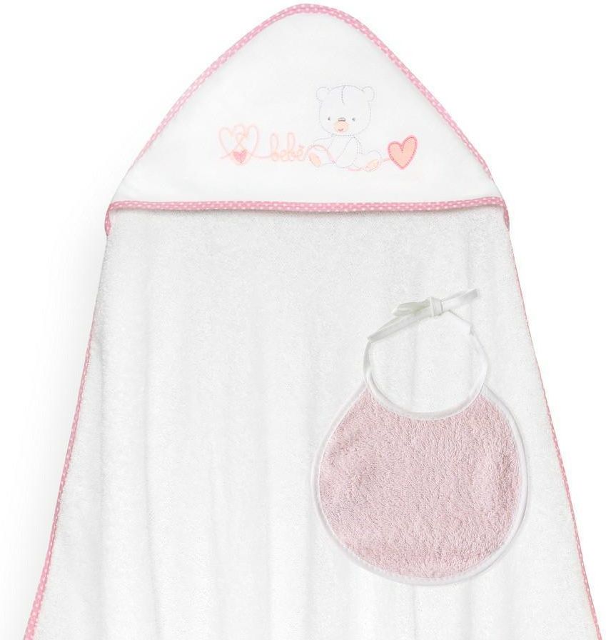 Interbaby Okrycie Kąpielowe 100X100 Corazones Biały Różowy Ręcznik Z Kapturkiem + Śliniaczek Warszawa