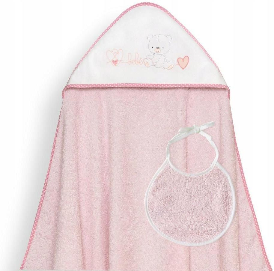 Interbaby Okrycie Kąpielowe 100X100 Corazones Różowy Ręcznik Z Kapturkiem + Śliniaczek Warszawa