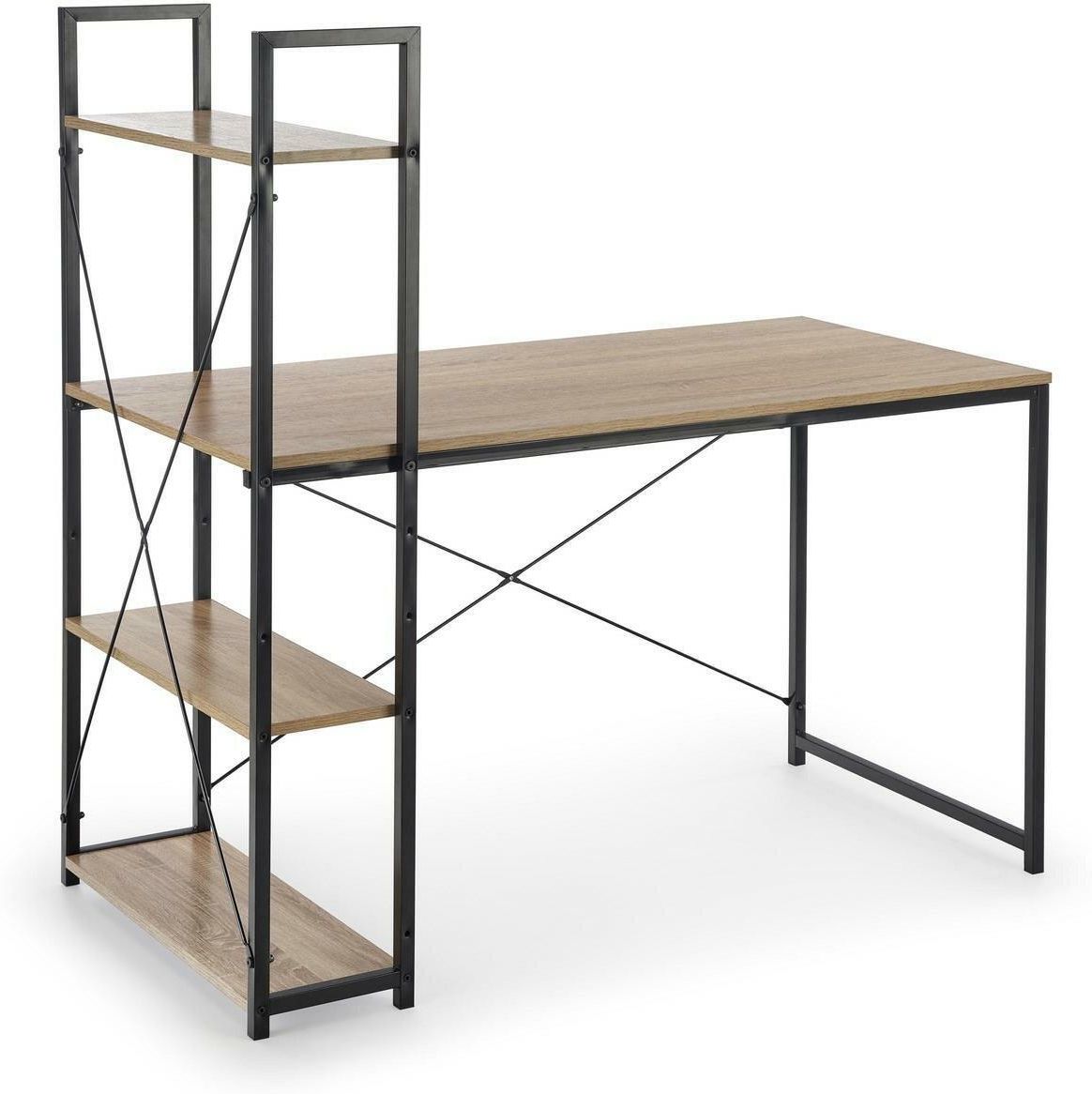 Odkryj wyjątkową funkcjonalność i styl! Biurko Nare z nadstawką to idealne rozwiązanie dla wszystkich poszukujących minimalistycznego, eleganckiego i funkcjonalnego biurka do swojego domowego biura. Ten projekt doskonale sprawdzi się zarówno w przypadku pracy, jak i nauki, pomagając Ci utrzymać wysoką produktywność i organizację. Jego stalowa, czarno malowana proszkowo rama dodaje mu nie tylko nowoczesnego wyglądu, ale także zapewnia wytrzymałość i stabilność. Blat wykonany z wysokiej jakości płyty meblowej w kolorze dąb sonoma jest nie tylko estetyczny, ale również łatwy do utrzymania w czystości. Jedną z największych zalet biurka Nare z nadstawką są trzy półki, które pozwalają na przechowywanie wszystkich niezbędnych przyborów szkolnych, dokumentów, książek czy innych przedmiotów związanych z pracą. Dzięki temu wszystko będzie zawsze pod ręką, bez konieczności szukania w różnych miejscach. Dodatkowym atutem jest możliwość montażu regału po lewej lub prawej stronie biurka, co pozwala na dostosowanie go do indywidualnych preferencji i potrzeb. Nie męcz się już z nieporęcznymi biurkami, które utrudniają Twoją pracę i utrzymanie porządku. Wybierz biurko Nare z nadstawką i zwiększ swoją produktywność dzięki jego funkcjonalności, minimalistycznemu designowi i możliwości dostosowania do siebie. To biurko, które nie tylko ułatwi Ci pracę, ale także dodatkowo ozdobi Twoje domowe biuro. Co warto wiedzieć przed podjęciem decyzji? Jest idealne dla przebywających w domu biur lub studentów Ma minimalistyczny design w czarnym kolorze Rama wykonana jest ze stali, a blat z płyty meblowej Posiada trzy półki, które mogą pomieścić przybory szkolne, długopisy itp.