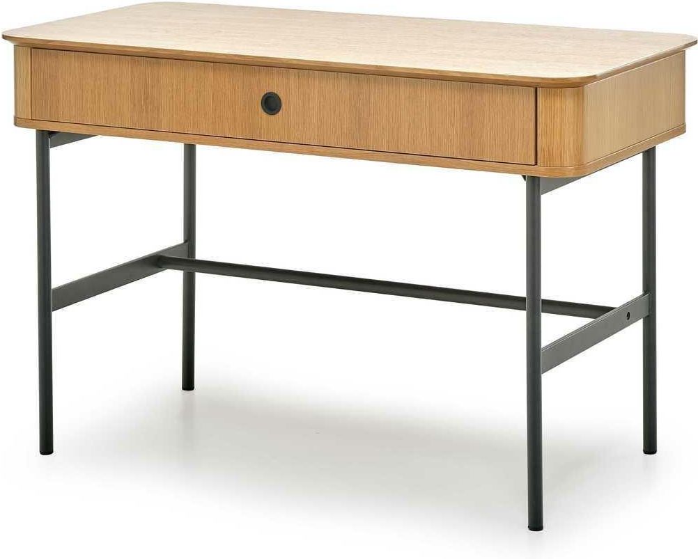 Biurko Zefir DĄB | CZERŃ Biurko Zefir to połączenie funkcjonalności z wyjątkowym stylem, które stanie się niezbędnym elementem każdego nowoczesnego wnętrza. Elegancko wykonane z wysokiej jakości materiałów, z uwzględnieniem detali takich jak naturalny dąb i stal w kolorze czarnym. To mebel skrojony zarówno do pracy, jak i do relaksu, pasujący idealnie do różnych pomieszczeń. ✅ Wykonane z wysokiej jakości MDF i płyty meblowej dla trwałości i elegancji ✅ Posiada jedną szeroką szufladę, idealną do przechowywania potrzebnych akcesoriów ✅ Harmonijne połączenie naturalnego dębu i czarnej stali, łączące klasyczny i nowoczesny design ✅ Wygodne i przestronne – 117 cm szerokości, idealne dla różnych zastosowań ✅ Doskonałe do użytku w sypialni, pokoju nastolatka lub domowym biurze Dodaj wyjątkowego charakteru Twojemu wnętrzu! Wysokość (cm): 76 Szerokość (cm): 117 Głębokość (cm): 58 Front: gładki Ilość szuflad: 1 Kształt blatu: prostokątny Materiał blatu: płyta MDF Materiał: płyta MDF, płyta meblowa, metal Wykończenie: półmat Materiał podstawy: stal Rodzaj materiału podstawy: stal Rodzaj podstawy: 4 nogi Kolor: naturalny, czarny Kolor:: naturalny dąb Kolor podstawy: czarny Funkcje/cechy: z szufladami Wymaga montażu: tak Do użytku zewnętrznego: nie Styl: boho, skandynawski, nowoczesny Pomieszczenie: biuro, sypialnia Typ mebla: Meble brązowe, Meble w stylu boho, Meble skandynawskie, Meble nowoczesne