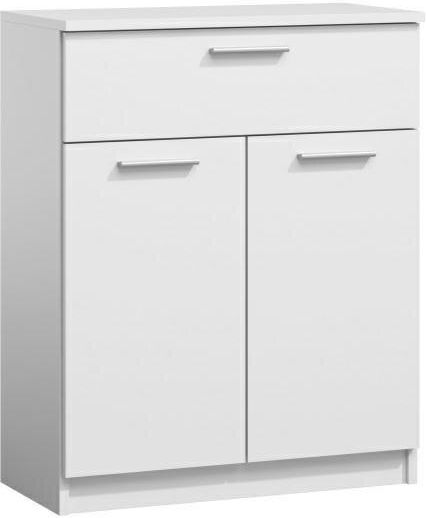 Komoda biała Naos z szufladą marki Intesi to nowoczesny mebel do salonu i sypialni o szerokości 71 cm, który łączy minimalistyczny design z praktycznymi rozwiązaniami do przechowywania. Gładkie, białe fronty, kompaktowe wymiary i pojemna szuflada sprawiają, że komoda doskonale sprawdzi się zarówno w przestrzeni dziennej, jak i w sypialni czy przedpokoju. Wykonana z trwałych materiałów, została zaprojektowana z myślą o codziennym komforcie i funkcjonalności. Nowoczesny styl, który rozjaśni każde wnętrze Komoda Naos w kolorze białym to kwintesencja nowoczesnej elegancji – jej prostota i lekkość wizualna doskonale wpisują się w aktualne trendy aranżacyjne. Matowe wykończenie oraz gładkie fronty podkreślają subtelny charakter mebla, który optycznie powiększa przestrzeń i dodaje jej świeżości. Kompaktowa szerokość 71 cm i wysokość 88 cm pozwalają na ustawienie komody nawet w niewielkich pomieszczeniach, co czyni ją idealnym wyborem do mieszkań w stylu nowoczesnym lub skandynawskim. Przemyślana funkcjonalność na co dzień Naos to nie tylko estetyka, ale także wygoda użytkowania. Pojemna szuflada i dwie szafki z łatwym dostępem umożliwiają sprawną organizację ubrań, dokumentów czy akcesoriów domowych. Blat o głębokości 35 cm stwarza dodatkowe miejsce na dekoracje, lampkę lub rodzinne pamiątki. Uniwersalny charakter komody sprawia, że sprawdzi się zarówno jako komoda do salonu, komoda do sypialni czy praktyczna komoda do przedpokoju. Dzięki niej uporządkujesz przestrzeń i zyskasz wszystko pod ręką. Solidność i łatwość utrzymania w czystości Komoda biała Naos została wykonana z trwałych materiałów, które gwarantują długie użytkowanie. Obrzeża wykończono wytrzymałym tworzywem, które skutecznie chroni przed uszkodzeniami i zarysowaniami. Gładkie powierzchnie komody są łatwe do czyszczenia – wystarczy przetrzeć miękką ściereczką, by mebel zawsze prezentował się świeżo i elegancko. Montaż jest intuicyjny, a solidne wykonanie zapewnia stabilność nawet przy intensywnym użytkowaniu. Kompaktowy rozmiar – szerokość 71 cm – idealny wybór do niewielkich pomieszczeń i wąskich przestrzeni Nowoczesny design w kolorze białym – rozjaśnia wnętrze i nadaje mu świeżości Pojemna szuflada i dwie szafki – łatwa organizacja akcesoriów i ubrań Łatwe utrzymanie w czystości – gładkie, odporne na zabrudzenia powierzchnie Uniwersalne zastosowanie – sprawdzi się jako komoda do salonu, sypialni lub przedpokoju