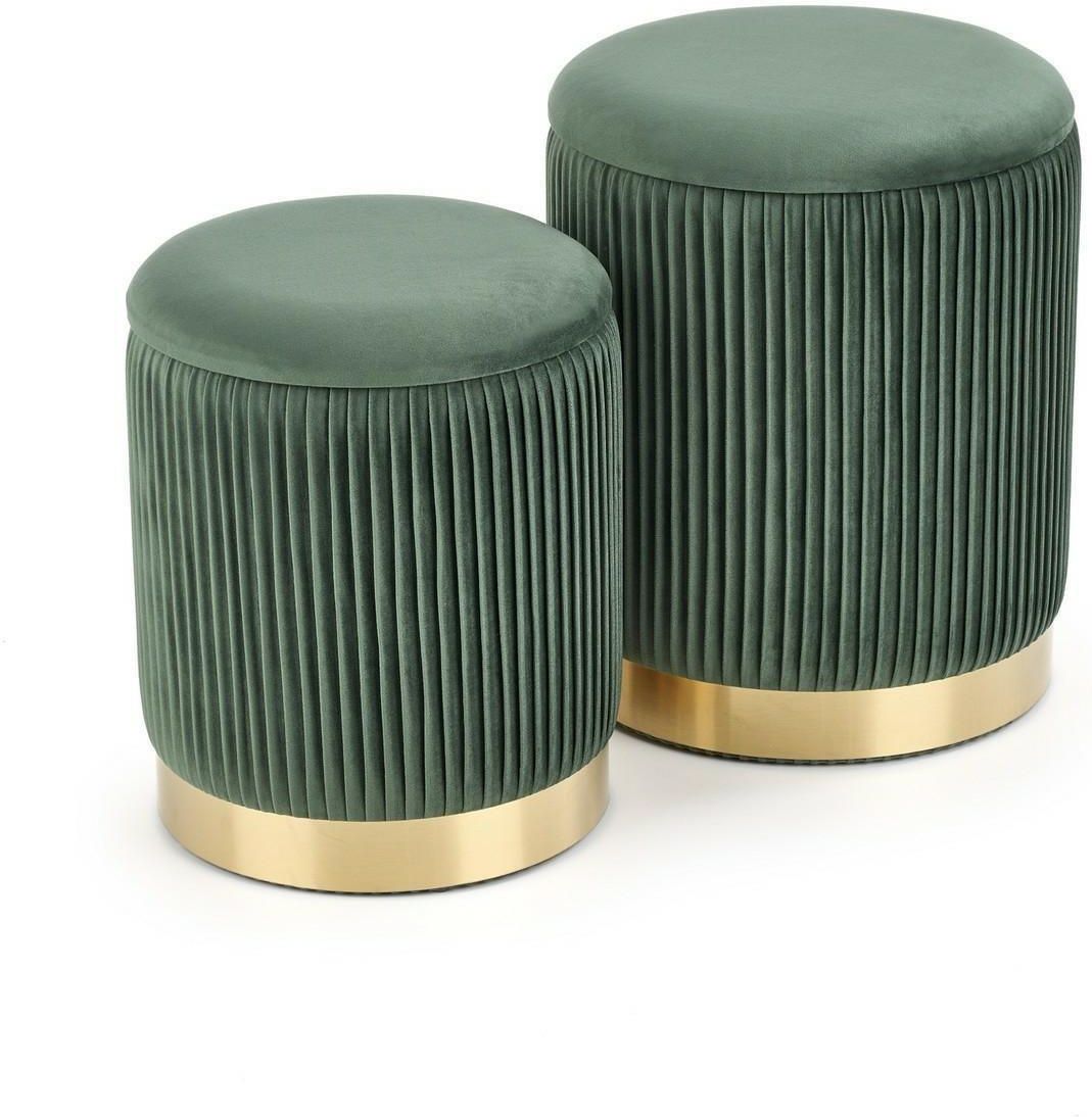 Zestaw 2 puf Goltra ze schowkiem ZIELONE Zestaw 2 tapicerowanych puf Goltra od Intesi to doskonałe połączenie nowoczesnego designu i elegancji. Wykonane z wysokiej jakości tkaniny i chromowanej stal pufy w kolorach zielonym i złotym dodadzą Twojemu wnętrzu szyku i stylu. ✅ Stylowy design: Zielony …