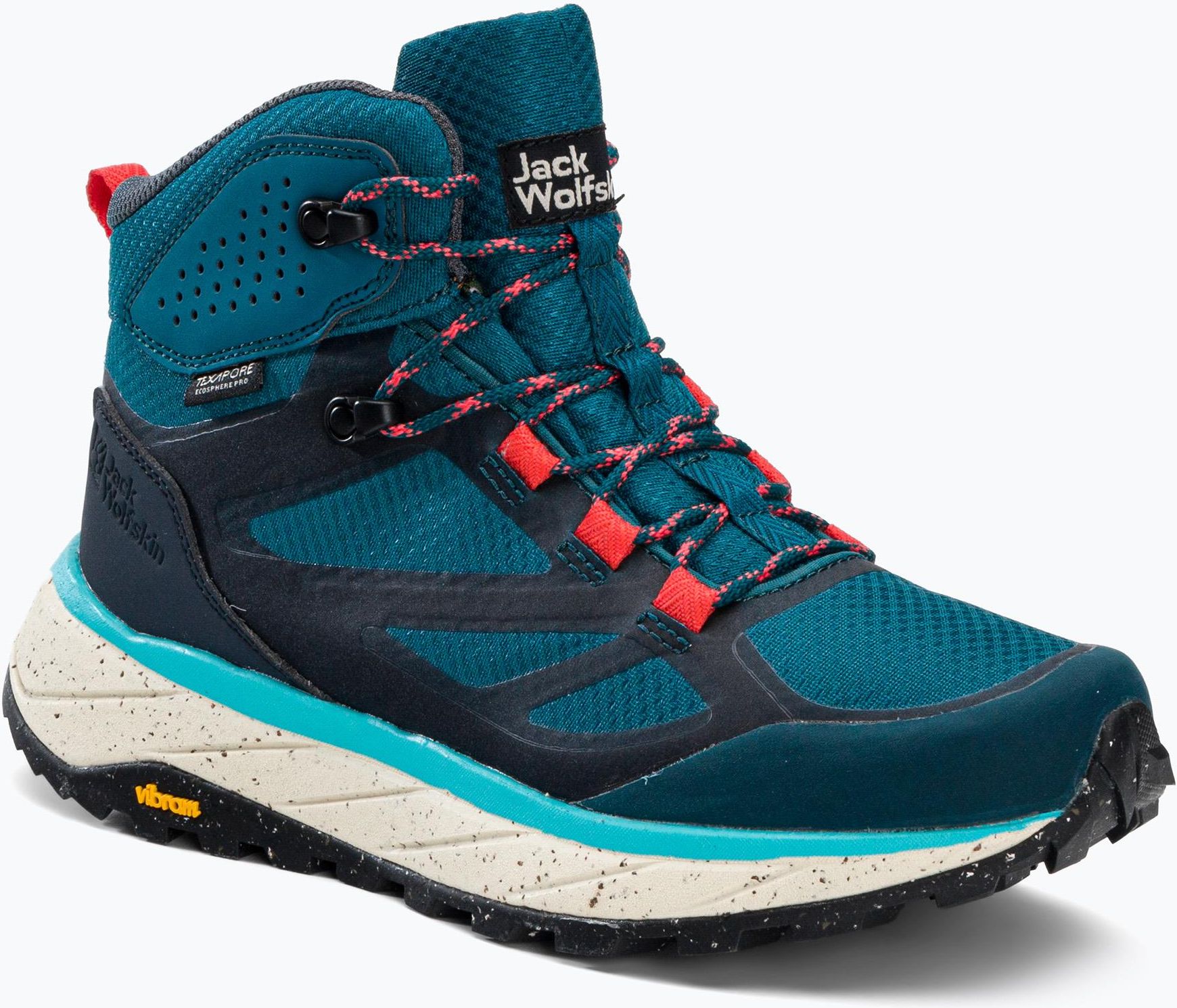 Buty trekkingowe damskie Jack Wolfskin Terraventure Texapore Mid niebieskie 4049991_1227_075 36 EU W modelu Jack Wolfskin TERRAVENTURE szczególną uwagę zwraca się na ochronę środowiska, nie ograniczając jednak przy tym jego funkcjonalności i właściwości. But oferuje ochronę przed mokrą pogodą, bardzo dobrą amortyzację i doskonałe wsparcie na wymagających szlakach górskich. Buty dzięki nieco sportowemu ale klasycznemu wyglądowi, sprawdzą się nie tylko podczas pieszych wędrówek w górach, ale również na co dzień. Kompatybilność z rakami: Nie Kraj pochodzenia marki: Niemcy Materiał cholewki: Tkanina Podeszwa zewnętrzna: VIBRAM ECOSTEP Płeć: Kobieta Przyjazność środowisku: PFC-Free, Wykonane z recyklingowanych materiałów Waga: 655 g Wkładka: OrthoLite® Podeszwa środkowa: EVA Wodoodporność: Tak Wiatroszczelność: Tak Model/kod produktu: Terraventure Texapore Mid 4049991_1227_075 Wzmocnienia: Przy palcach Kolor wiodący: Niebieski Membrana: 20.000 Rodzaj zapięcia: Sznurówki Sezon: Wiosna/Lato Technologie: 100% PFC-free, Ortholite®, Vibram®, TEXAPORE ECOSPHERE PRO Oddychalność: 15.000 gr/m2/24h. Sport: Turystyka Rozmiar: 36