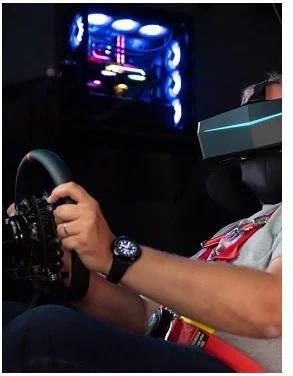 Jazda samochodem przy użyciu profesjonalnego symulatora jazdy w salonie SIM-Center w Poznaniu. Symulator realistycznie odzwierciedla warunki panujące w pojeździe wyścigowym.