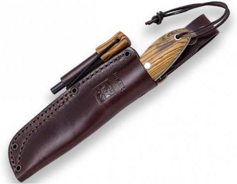 Joker Nóż Canadiense Cb114 P Z Krzesiwem 10,5cm (060274) Joker Nóż Canadiense Cb114 P Z Krzesiwem 10,5cm (060274) to idealne narzędzie dla każdego entuzjasty przygód, które łączy w sobie funkcjonalność, solidność oraz klasyczny design. Wzorowany na tradycyjnym nożu kanadyjskim, sprawdzi się zarówno w codziennym użytkowaniu, jak i w trudnych warunkach terenowych. Dzięki swoim właściwościom, jest to doskonały wybór dla miłośników bushcraftu i outdooru. Rodzaje noży Na rynku dostępne są różnorodne rodzaje noży, które różnią się przeznaczeniem oraz konstrukcją. Wybór odpowiedniego typu może mieć kluczowe znaczenie w kontekście planowanych zadań. Oto krótka charakterystyka dostępnych rodzajów: noże stałe, niezwykle wytrzymałe i stabilne, idealne do zadań wymagających dużej siły, takich jak batonowanie czy prace terenowe, noże składane, kompaktowe i poręczne, doskonałe do codziennego użytku, ale mogą tracić na wytrzymałości w trudnych warunkach, noże karambity, charakteryzujące się specyficznym kształtem i zastosowaniem, często używane w sztukach walki. Joker Nóż Canadiense Cb114 P z Krzesiwem 10,5cm (060274) to doskonały wybór dla tych, którzy szukają niezawodnego narzędzia do zadań terenowych i outdoorowych. Długość i materiał ostrza Ostrze modelu Joker Nóż Canadiense ma długość 10,5 cm, co czyni go bardzo wszechstronnym narzędziem do różnych zastosowań. Klinga wykonana jest z wysokiej jakości szwedzkiej stali nierdzewnej Sandvik 14C28N, co zapewnia doskonałą odporność na korozję oraz długotrwałe utrzymanie ostrości. Pełny płaski szlif ostrza umożliwia efektywne cięcie, co jest niezwykle istotne w zastosowaniach bushcraftowych, takich jak przygotowywanie ognia czy przyrządzanie posiłków w terenie. Rodzaj rękojeści Rękojeść noża została wykonana z drewna bukszpanu, co podnosi zarówno estetykę, jak i komfort użytkowania. Drewno bukszpanu jest materiałem, który dobrze leży w dłoni, co minimalizuje ryzyko poślizgnięcia się podczas pracy. Dzięki ergonomicznemu kształtowi, Joker Nóż Canadiense Cb114 P z Krzesiwem 10,5cm (060274) doskonale sprawdza się podczas długotrwałego użytkowania, co ma kluczowe znaczenie w wędrówkach i pracach terenowych. Mechanizm otwierania noża Joker Nóż Canadiense to nóż stały, co oznacza, że nie posiada mechanizmu otwierania. Dzięki temu jego konstrukcja jest prosta i solidna, co zapewnia niezawodność w trudnych warunkach. Użytkownicy nie muszą martwić się o zacięcia czy inne problemy związane z mechanizmami otwierania, co czyni go idealnym narzędziem do zastosowań w terenie. Rodzaj zabezpieczenia W przypadku noża stałego, jak Joker Nóż Canadiense, zabezpieczenie nie jest tak istotne, jak w nożach składanych. Niemniej jednak, nóż wyposażony jest w pochewkę z grubej, naturalnej skóry o ciemnobrązowym kolorze, co zapewnia ochronę ostrza oraz bezpieczeństwo podczas przenoszenia. Pochewka umożliwia noszenie noża na pasie w dwóch pozycjach (niżej lub wyżej), co jest praktycznym rozwiązaniem dla każdego miłośnika outdooru. Dodatkowe cechy Joker Nóż Canadiense Cb114 P z Krzesiwem 10,5cm (060274) to nie tylko wysokiej jakości nóż, ale także praktyczne akcesorium. W zestawie znajduje się krzesiwo, które stanowi nieodłączny element wyposażenia każdego bushcraftowca. Krzesiwo umożliwia szybkie i skuteczne rozpalanie ognia, co jest kluczowe w warunkach survivalowych oraz podczas biwakowania. Uchwyt krzesiwa wykonany jest z tego samego gatunku drewna co rękojeść noża, co dodatkowo podkreśla estetykę całego zestawu. Waga noża Waga noża jest istotnym czynnikiem dla użytkowników, którzy planują długie wędrówki. Choć dokładna waga modelu Joker Nóż Canadiense Cb114 P z Krzesiwem nie została podana, jego solidna konstrukcja w połączeniu z ergonomią sprawia, że narzędzie to jest stosunkowo lekkie i wygodne w przenoszeniu. Dzięki temu doskonale nadaje się do długotrwałego użytku na świeżym powietrzu.