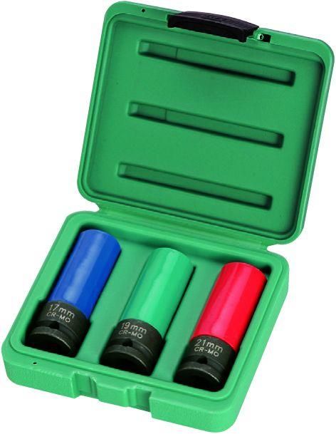Nasadka wykonana ze stali chromowo-wanadowo-molibdenowej (CrVMo) Ulepszona cieplnie Dzięki plastikowej osłonie chroni felgę przez przypadkowym zarysowaniem lub uszkodzeniem Magnes umieszczony wewnątrz nasadki ułatwia wyjęcie i wkręcenie szpilki W zestawie nasadki w rozmiarze 17, 19 i 21 mm …