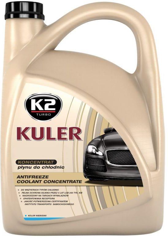 k2 kuler koncentrat to nowoczesny, a zarazem uniwersalny, koncentrat płynu do chłodnic, cechujący się bardzo wysokimi parametrami użytkowymi. zapewnia optymalną temperaturę pracy specjalnie opracowana receptura latem chroni silnik przed przegrzaniem, a zimą przed zamarzaniem. pełna ochrona silnika przez 5 lat lub 250 tys. km doskonały pakiet inhibitorów złożony z kwasów karboksylowych z dodatkiem specjalnych inhibitorów korozji i środków antypiennych zabezpiecza silnik. zapewnia pełna ochronę silnika przez 5 lat lub 250 tys. kilometrów, także gdy mieszamy go z innymi markowymi płynami o przedłużonej żywotności, niezależnie od koloru. do wszystkich typów chłodnic k2 kuler może być stosowany we wszystkich rodzajach chłodnic, zwłaszcza aluminiowych oraz mieszany z innymi płynami równie wysokiej jakości, niezależnie od koloru. zaawansowana technologicznie, najwyższej jakości receptura nagrodzony złotymi medalami na międzynarodowych targach wynalazków w brukseli, genewie i seulu. opatentowana, zaawansowana technologicznie receptura płynu spełnia rygorystyczne normy amerykańskie astm d 3306 i astm d 2570. najwyższa jakość potwierdzają badania instytutu technicznego wojsk lotniczych wg normy pn-c-40007. marka k2 została wyróżniona złotym medalem konkursu laur konsumenta w latach 2006-2015, jako marka ciesząca się największym uznaniem konsumentów. . K2 kuler koncentrat to nowoczesny, a zarazem uniwersalny, koncentrat płynu do chłodnic, cechujący się bardzo wysokimi parametrami użytkowymi.zapewnia optymalną temperaturę pracy specjalnie opracowana receptura latem chroni silnik przed przegrzaniem, a zimą przed zamarzaniem.pełna ochrona silnika przez 5 lat lub 250 tys. km doskonały pakiet inhibitorów złożony z kwasów karboksylowych z dodatkiem specjalnych inhibitorów korozji i środków antypiennych zabezpiecza silnik. zapewnia pełna ochronę silnika przez 5 lat lub 250 tys. kilometrów, także gdy mieszamy go z innymi markowymi płynami o przedłużonej żywotności, niezależnie od koloru.do wszystkich typów chłodnic k2 kuler może być stosowany we wszystkich rodzajach chłodnic, zwłaszcza aluminiowych oraz mieszany z innymi płynami równie wysokiej jakości, niezależnie od koloru.zaawansowana technologicznie, najwyższej jakości receptura nagrodzony złotymi medalami na międzynarodowych targach wynalazków w brukseli, genewie i seulu. opatentowana, zaawansowana technologicznie receptura płynu spełnia rygorystyczne normy amerykańskie astm d 3306 i astm d 2570. najwyższa jakość potwierdzają badania instytutu technicznego wojsk lotniczych wg normy pn-c-40007. marka k2 została wyróżniona złotym medalem konkursu laur konsumenta w latach 2006-2015, jako marka ciesząca się największym uznaniem konsumentów.