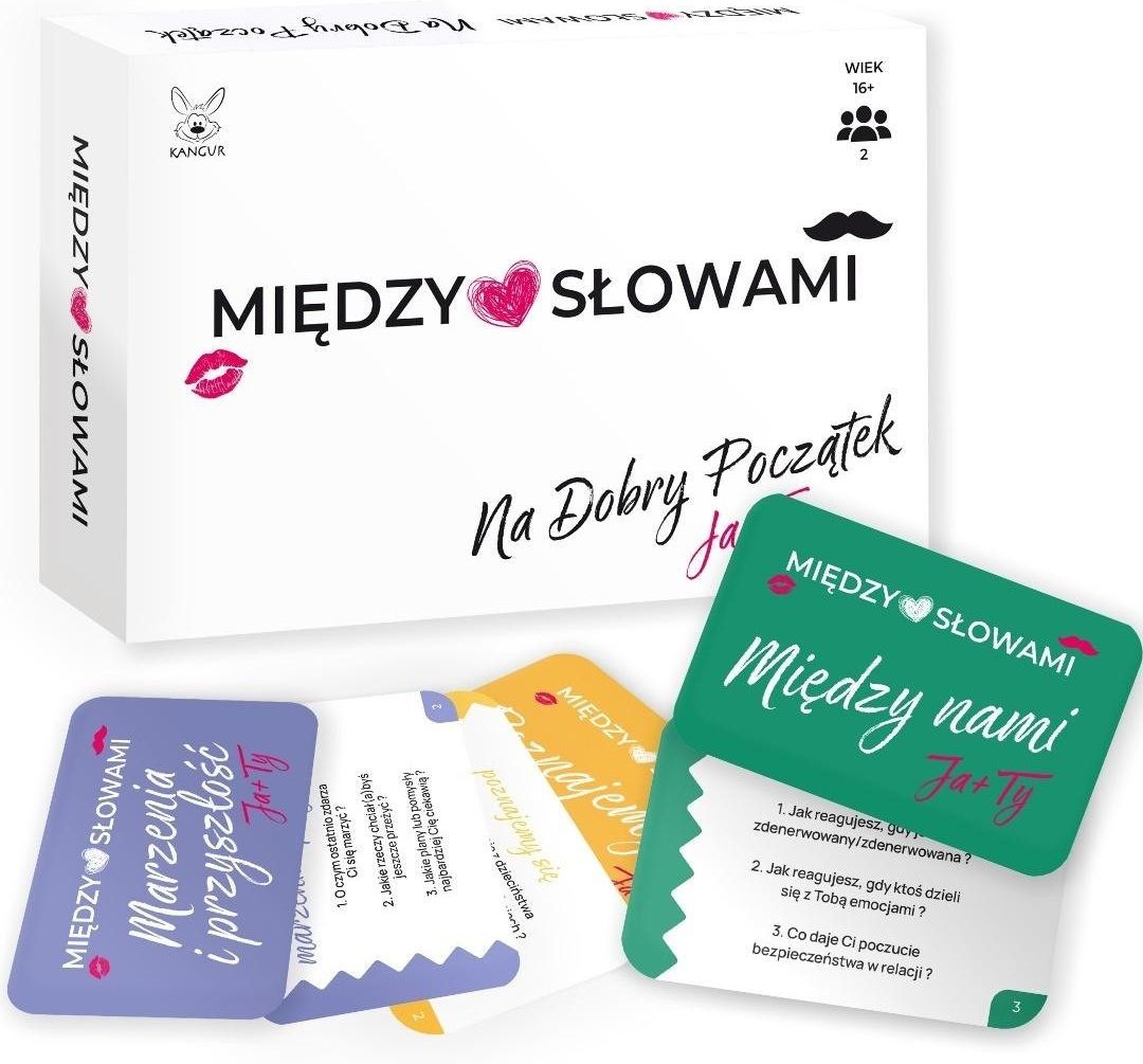 MIĘDZY SŁOWAMI - NA DOBRY POCZĄTEK Producent: KANGUR Opakowanie: PUDEŁKO EAN: 5905723443859 "Między Słowami - Na Dobry Początek" to zaproszenie do rozmowy, która pomaga się poznać naprawdę - bez presji, bez ocen i bez pośpiechu. Dzięki starannie dobranym pytaniom stworzycie przestrzeń na swobodne rozmowy, odkrywanie siebie nawzajem i budowanie bliskości krok po kroku. To idealna propozycja dla świeżych związków, par na początku drogi i wszystkich, którzy chcą zacząć swoją historię od dobrej rozmowy. Bo najlepsze relacje zaczynają się Między Słowami. [Kod oferty,758055,5905723443859,2026-03-05 18:58:57]