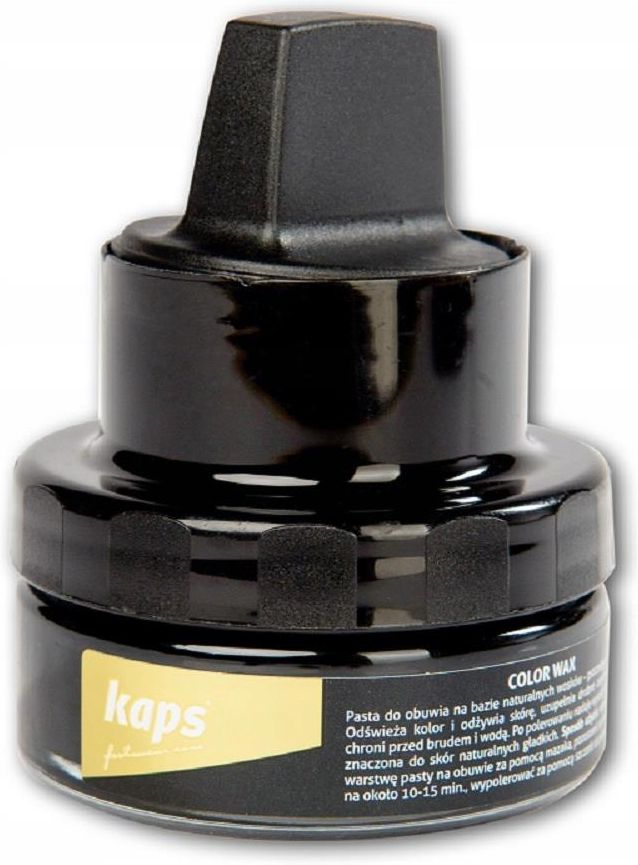 Bezbarwna pasta do butów z woskiem, Color Wax, Kaps. Pasta do butów na bazie naturalnych wosków - pszczelego i carnauba. Odświeża kolor i odżywia skórę, uzupełnia drobne zarysowania oraz chroni przed brudem i wodą. Po polerowaniu nadaje wysoki połysk. Przeznaczona do skór naturalnych gładkich. Pasta woskowa Color Wax Kaps dostępna w kolorach: czarnym, bezbarwnym, brązowym, ciemnobrązowym Nanieść cienką warstwę pasty na obuwie za pomocą mazaka, pozostawić do wyschnięcia na około 10-15 min., wypolerować za pomocą szczotki do polerowania.