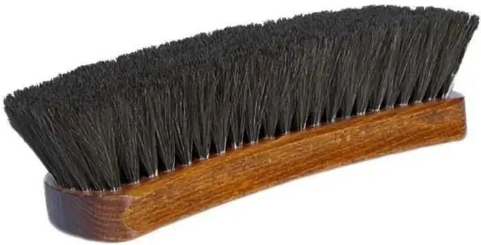 Szczotka do polerowania obuwia z włosia końskiego Lux 17cm duża czarna Wysokiej klasy szczotka z serii LUX służąca do polerowania obuwia w celu uzyskania pożądanego połysku. Ciepło wytwarzane na powierzchni skóry podczas polerowania sprawia, że pasta do butów ma idealną konsystencję, dzięki czemu może wnikać w pory skóry, tworząc cienką warstwę ochronną. Powstaje gładka powierzchnia, która chroni buty przed zabrudzeniem i nadaje skórze szczególny połysk. Wykonana z naturalnego końskiego włosia w kolorze czarnym, o miękkiej strukturze, w 100% bezpiecznego dla każdego rodzaju skóry licowej. Włosie zostało osadzone w eleganckiej, lakierowanej rączce wykonanej z drewna. W rączce znajdują się boczne zagłębienia na palce, ułatwiające stabilne trzymanie szczotki w trakcie polerowania obuwia. Kolor: czarne