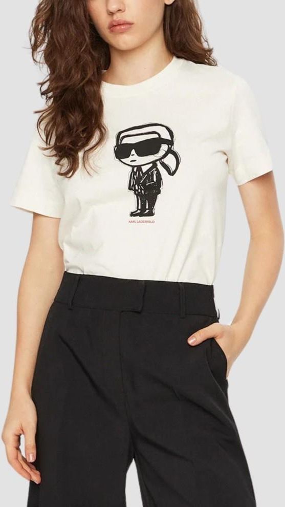 KARL LAGERFELD Beżowy damski t-shirt Ikon Sketch Karl, Rozmiar XS Warszawa