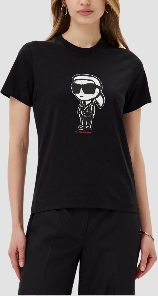KARL LAGERFELD Czarny damski t-shirt Ikon Sketch Karl, Rozmiar L Warszawa