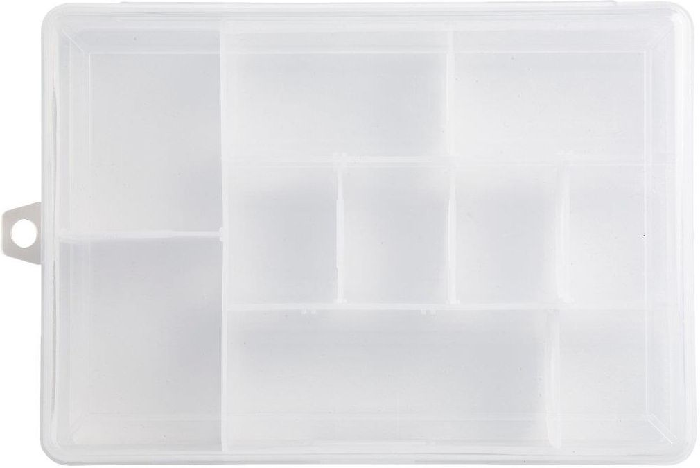 Pudełko na przynęty spławiki haczyki wędkarskie Praktyczne pudełko wędkarskie z aż 10 komorami! Średnie pudełko na przynęty marki Kayoba może posłużyć również do przechowywania haczyków, obciążników, spławików, większych błystek wahadłowych i obrotowych oraz mniejszych woblerów. Pudełko ma sześć ruchomych przegródek, które w zależności od ułożenia dzielą pudełko na od czterech do dziesięciu komór. Przykrywka jest zamykana na zatrzask, a z boku znajduje się uchwyt do zawieszenia. Specyfikacja techniczna Gwarancja (w miesiącach): 12 m. Wymiary: Szer:190xWys:38xGł:135 mm