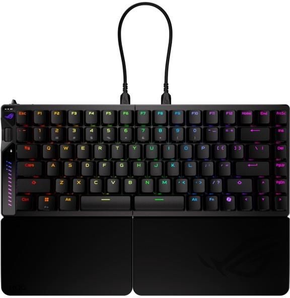 ASUS ROG Falcata Herní klávesnice ROG Falcata 75 % s rozdělenou klávesnicí, magnetickými spínači ROG HFX V2 s možností výměny za provozu a snímačem ROG Hall Sensor; vybavená přepínačem Rapid Trigger, intuitivním ovládáním a multifunkčním kolečkem, třírežimovým připojením s bezdrátovou technologií …