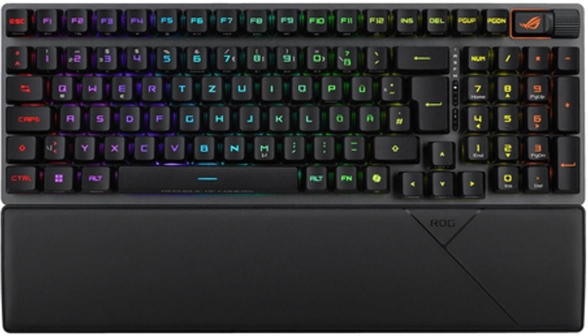 ROG Strix Scope II 96 RX Wireless. Współczynnik kształtu klawiatury: 96%. Styl klawiatury: Prosta. Technologia transmisji: Przewodowa i bezprzewodowa, Interfejs urządzenia: USB + RF Wireless + Bluetooth, Przełącznik klawiatury: Optyczny przełącznik klawiszy. Typ podświetlenia: RGB LED, Podpórka pod nadgarstki. Długość kabla: 2 m. Zalecane zastosowanie: Gry. Kolor produktu: Czarny Opis produktu : ROG Strix Scope II RX - Klawiatura - 96% - QWERTZ - Niemiecka - Czarna Urządzenie wejściowe Typ urządzenia : Klawiatura Podświetlenie : Na klawisz RGB Interfejs : 2.4 GHz, Bluetooth 5.1, USB Odbiornik bezprzewodowy : Odbiornik bezprzewodowy USB ROG Omni Łączność : Bezprzewodowa, przewodowa Lokalizacja i układ : QWERTY niemiecki Funkcja skrótów klawiaturowych : Regulacja głośności, wielofunkcyjna, programowalna, multimedialna Klawiatura numeryczna : Tak Gaming : Tak Typ przełącznika : Mechaniczny optyczny ROG RX RED Kolor : Czarny Wymiary (szerokość x głębokość x wysokość) : 37.7 cm x 13,1 cm x 4 cm Waga : 1,012 kg Wymagania systemoweObsługuje systemy operacyjne Windows:Windows 11Waga i wymiaryWymiary klawiatury (WxDxH):377 x 131 x 40 mmWaga klawiatury:1,26 kgZasilanieŹródło zasilania:Bateria, USBPort ładowania USB typu C:TakWymagana moc ładowania (min.):0,33 WWymagana moc ładowania (maks.):4,5 WUSB Power :TakKlawiatura: TakZalecane użycie:GamingTechnologia transmisji:Przewodowa i bezprzewodowaInterfejs urządzenia:USB + RF Wireless + BluetoothPrzełącznik klawiatury:Optyczny przełącznik klawiszyUrządzenie wejściowe:NieFormat klawiatury:96%Klawiatura numeryczna:TakNasadki klawiszy:Podwójny wątekMateriał klawiszy:Akrylonitryl-butadien-styren (ABS)Żywotność klawiszy klawiatury:100 milionów znakówKlawisze skrótów:TakProgramowalne klawisze skrótów:TakRollover:N-klawiszowe przewijaniePasmo częstotliwości:2.4 GHzCzęstotliwość głosowania:8000 HzWersja Bluetooth:5.1Dane opakowaniaSzerokość opakowania:410 mmGłębokość opakowania:172 mmWysokość opakowania:70 mmWaga opakowania:1,67 kgRodzaj opakowania:PudełkoZakres dostawyLiczba produktów w zestawie:1 sztZasilacz sieciowy:NieOdbiornik w zestawie:TakInstrukcja obsługi:TakKarta gwarancyjna:TakKonstrukcja podświetleniaPodświetlenie:TakKolor produktu:CzarnyTyp podświetlenia:LED RGBKolor podświetlenia:WielokolorowyStyl klawiatury:ProstaInteligentna, ergonomiczna konstrukcja:TakPodpórka pod nadgarstki:TakMateriał:ABS syntetyczny, silikonMyszMysz w zestawie:NieCechyZłącze USB:USB Typ-CDługość kabla:2 mAnti-ghosting:TakLiczba portów USB 2.0:1 Klawiatura Asus ROG Strix Scope II 96 RX Wireless BLK: Bezprzewodowa klawiatura gamingowa z mechanicznymi przełącznikami i podświetleniem RGB. ASUS ROG Strix Scope II 96 RX - bezprzewodowy, optyczny monitor do gier z Bluetooth i 2,4 GHz, strumieniowymi klawiszami funkcyjnymi, przełącznikami optycznymi ROG RX, kolor szary ASUS ROG Strix Scope II RX - klawiatura - 96% - podświetlenie - bezprzewodowa - 2,4 GHz, Bluetooth 5.1, USB - QWERTY - język niemiecki - przełącznik klawiszy: optyczny mechaniczny ROG RX RED - czarna