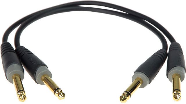 Dwie dobrej jakości złączki typu patch do efektów gitarowych. Oryginalny produkt firmy KLOTZ AIS - światowego lidera w produkcji kabli do zastosowań audio. Złączki są bardzo elastyczne i wytrzymałe - 5 lat gwarancji firmy KLOTZ na kabel !!! Symbol - AU-JJ0015 Komplet - 2 złączki o długości 15cm Kolor - CZARNY Kabel - PCU101 - średnica 4,5mm Wtyki - 2 x jack prosty 6,3mm wykonany z matowego PVC Złącza - złocone 24 karatowym złotem MADE IN GERMANY
