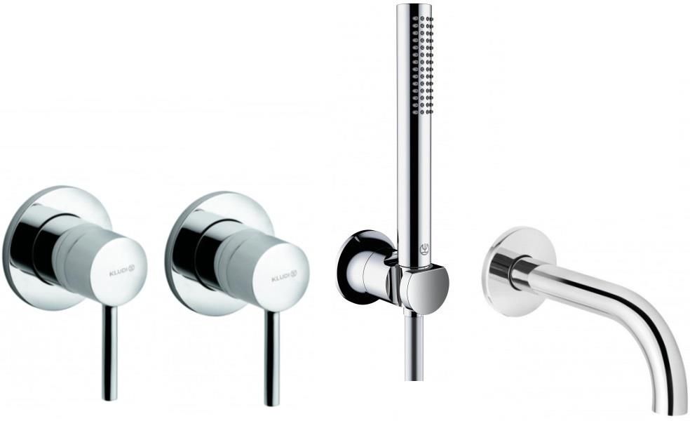 W skład wchodzi Kludi Bozz Bateria natryskowa podtynkowa chrom - element zewnętrzny - do kompletacji z elementem podtynkowym (sprzedawanym oddzielnie) - uchwyt prosty - marka: Kludi - seria: Bozz - jednouchwytowa - termostat: nie - montaż: podtynkowa Kludi element podtynkowy do baterii natryskowej:- zestaw elementów wewnętrznych - bez natynkowych elementów wykończeniowych - montaż ścienny - klasa przepływu B - głowica ceramiczna z ogranicznikiem wypływu - gorącej wody - I grupa akustyczna Kludi Suparaflex Silver Wąż natryskowy 125 cm chrom - wąż prysznicowy Suparaflex Silver - obustronnie odporny na skręcanie - długość 125 cm - z gwintami G 1/2" Kludi przyłącze kątowe do węża natryskowego ze ściennym uchwytem natryskowym, chrom - z uchwytem na słuchawkę prysznicową - do węży zakończonych nakrętką stożkową - gwint G 1/2 - montaż ścienny - zawór zwrotny Kludi Bozz wylewka wannowa, chrom -wylewka wannowa 16 cm, Kludi Nova Fonte słuchawka prysznicowa 1s chrom - rączka natrysku 1S - z systemem szybkiego usuwania kamienia wapiennego - strumień deszczowy - ilość strumieni: 1