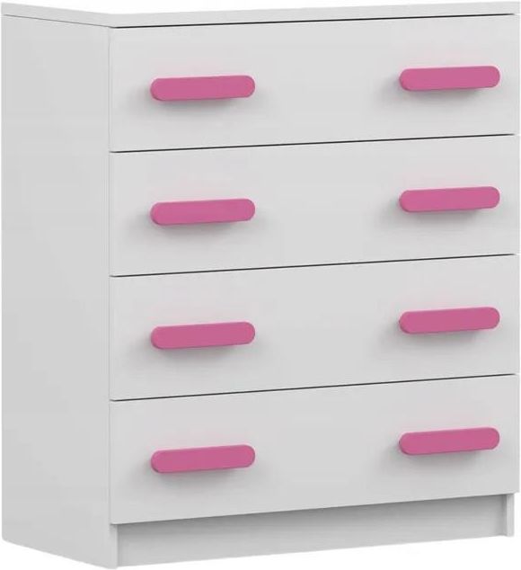 Komoda dziecięca młodzieżowa SMYK I – 4S 02 Komoda SMYK I to praktyczny i pojemny mebel, który sprawdzi się w każdym dziecięcym lub młodzieżowym pokoju. Dzięki czterem dużym szufladom z łatwością pomieści ubrania, zabawki, książeczki czy inne drobiazgi. Prosta forma i uniwersalna kolorystyka sprawiają, że komoda pasuje do różnych aranżacji, a drewniane, kolorowe uchwyty dodają jej oryginalności i charakteru . Najważniejsze zalety 4 pojemne szuflady (79 × 20 cm) – świetne na ubrania i akcesoria 👕👗 Solidna płyta laminowana 16 mm – trwałość i odporność na uszkodzenia 💪 Estetyczne obrzeża ABS – dodatkowa ochrona przed uderzeniami 🔒 Kolorowe uchwyty z litego drewna – aż 8 wariantów do wyboru 🌈 Stabilna konstrukcja – waga 35 kg zapewnia bezpieczeństwo użytkowania 🏡 Łatwy montaż – w zestawie komplet akcesoriów + instrukcja 📦🛠️ Wymiary Szerokość: 80 cm Wysokość: 90 cm Głębokość: 40 cm 🎨 Wybierz kolor uchwytów Różowy Niebieski Limonka Czerwony Wrzos Dąb Sonoma Szary Biały 🌟 Dlaczego warto wybrać komodę SMYK I? Uniwersalny design – pasuje do pokoju dziecka i nastolatka Wysoka jakość wykonania – polska produkcja, trwałe materiały Funkcjonalność – idealna do przechowywania ubrań, zabawek i akcesoriów Nowoczesny styl + kolorowe akcenty – mebel praktyczny i dekoracyjny w jednym