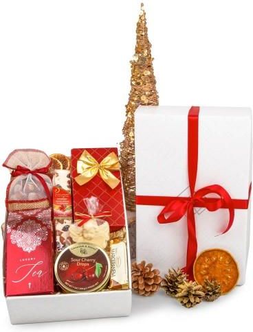 Kosz podarunkowy KS41 Cudowne Chwile Japońska herbata czarna liść, płatki róż 80g Przepyszne Belgijskie praliny w eleganckim opakowaniu z kokardą 125g Aniołek wykonany z białej czekolady ręcznie robiony 28g Batonik z marcepanem 50g Wyśmienite landrynki Cavendish&Harvey o smaku wiśniowym 200g NUGAT miękki orzeszki ziemne i żurawina 100g Orzechy laskowe z polskiej plantacji w woreczku jutowym 100g Eleganckie Pudełko białe Ozdoba świąteczna Celofan z kokardką Prowadzimy wysyłkę na terenie całej Polski. W przypadku zainteresowania wysyłką indywidualną, prosimy o kontakt. Zamówienia realizujemy od minimalnej ilości 10 szt. jednego zestawu. Ceny netto, do wszystkich naszych upominków świątecznych wystawiamy faktury VAT23%.