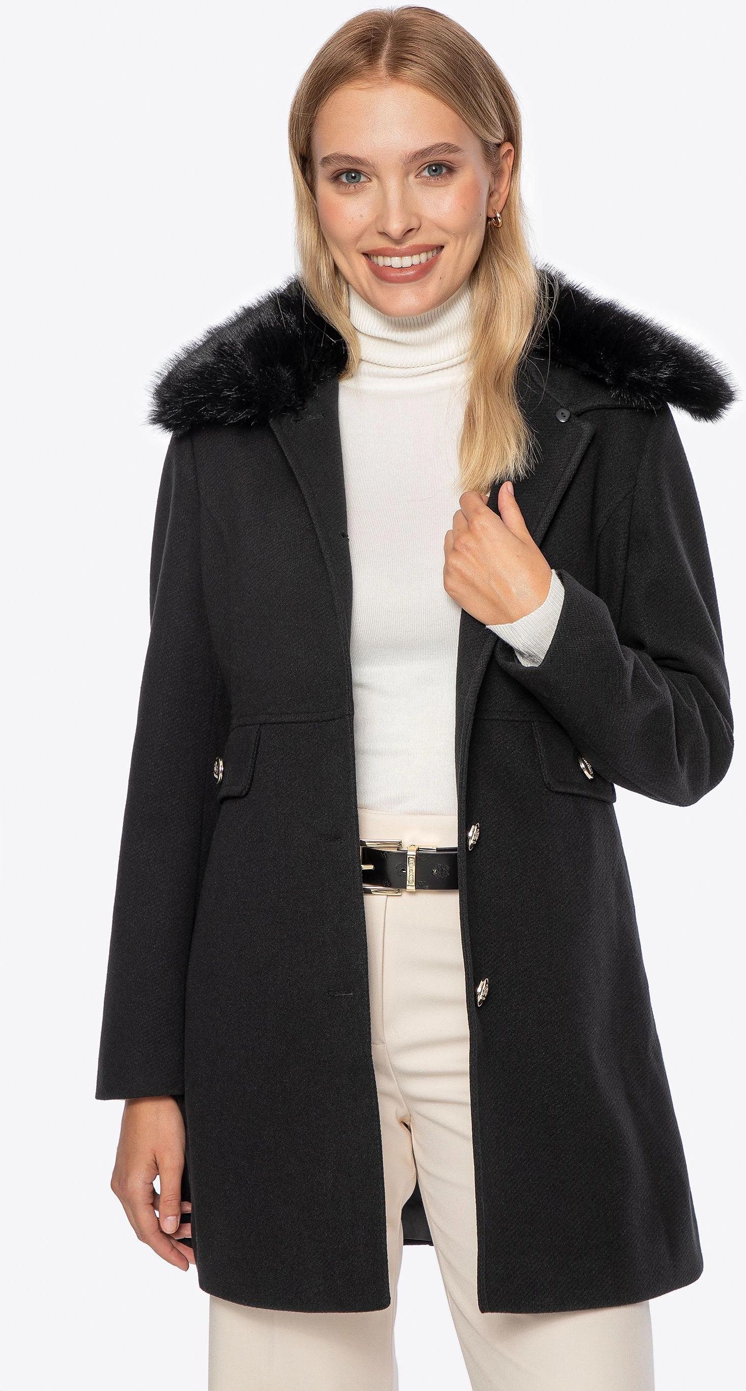 Opinie Krótki płaszcz damski z futerkowym kołnierzem czarny Warszawa