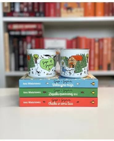 Kubek Gai z Gajówki Wyjątkowy, ceramiczny kubek inspirowany światem Gai z Gajówki – idealny dla małych odkrywców, wielbicieli przygód i miłośników natury! Gajówkowy kubek zdobią urocze, barwne i wyjątkowe ilustracje, które przeniosą was do pachnącego szyszkami lasu, gdzie Gaja przeżywa swoje niezapomniane przygody i poznaje okoliczną przyrodę. Każdy łyk z tego kubka to jak podróż do serca natury – idealny na korzenną herbatę, ciepłe kakao czy sok po pełnym wrażeń dniu. Kubek Gai stanie się niezastąpionym towarzyszem jesiennych wieczorów, zimowych kuligów, wiosennych wypraw i letnich obozów! Zawsze będziecie mieć przy sobie swoich ulubionych bohaterów: Gaję, Łatkę i mieszkańców lasu. Wytrzymała ceramika i wygodny uchwyt sprawiają, że kubek umili poranki i wieczory spędzane z ulubioną lekturą! Kubek Gai z Gajówki – z niego każdy łyk smakuje przygodą! Kubek ceramiczny, emaliowany, z barwionym rantem Kolorowy nadruk z ilustracjami z serii „Gaja z Gajówki” Pojemność: 300 ml Wysokość: 80 mm Średnica: 90 mm Zapakowany w pudełko kartonowe Kubek Gai to specjalny produkt dla wszystkich miłośników serii książek autorstwa Anny Włodarkiewicz, dedykowanej dzieciom w wieku od 6 do 8 lat. Ilustracje do serii „Gaja z Gajówki” stworzyła Kasia Piątek. Seria książek o dziewczynce mieszkającej w leśniczówce to zabawne i urocze opowieści, które przeniosą czytelników do niezwykłego lasu i nad polskie morze! Gaja pokaże wam swoje proste, a jednocześnie niesamowicie ciekawe życie w samym sercu lasu, pełne miłości do przyrody, leśnych przygód i rodzinnych chwil. Poznaj wszystkie części przygód Gai z Gajówki: Tom 1 - Chatka w sercu lasu Tom 2 - Zagadka opuszczonej wsi Tom 3 - Wakacyjna misja