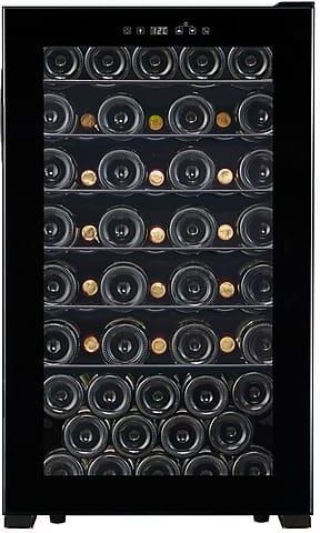 Winiarka wolnostojąca La Sommeliere VN54 3541362311221 Winiarka VN54 o eleganckim czarnym wyglądzie pomieści do 54 butelek. Zapewnia precyzyjną temperaturę w zakresie od 5 do 20°C dzięki elektronicznej regulacji i zewnętrznemu cyfrowemu panelowi sterowania. Wyposażona w 6 wysuwanych metalowych półek, chroni wina za pomocą drzwi ze szkła hartowanego odpornego na promienie UV i białego oświetlenia LED. Kompatybilna z aplikacją Vinotag® do cyfrowego zarządzania Twoją kolekcją win. Model: VN54 Rodzaj urządzenia: wolnostojące Przeznaczenie: serwowanie Maksymalna liczba butelek (0,75l): 54 Strefy temperatur: 1 Zakres regulacji temperatury: 5 - 20 °C Wyświetlacz cyfrowy temperatury: tak Oświetlenie wewnętrzne: LED Liczba półek: 6 metalowych Wysuwane półki: tak Wymiary - wysokość (cm): 83,8 Wymiary - szerokość (cm): 48 Wymiary - głębokość (cm): 56,5 Drzwi: szkło Rama drzwi: czarna Zmiana kierunku otwierania drzwi: nie Regulowane nóżki: nie Kółka z tyłu: tak ( 1,9 cm ) Obudowa: czarna Zamek: nie System antywibracyjny: tak Alarm: nie Cyfrowy wyświetlacz wilgotności: nie Filtr węglowy: nie System zimowy: nie Chłodzenie: R600a Waga netto: 30,4kg Pobór prądu: 140 kWh / rok Klasa energetyczna: G Klasa klimatyczna: SN-ST Poziom hałasu: 38 dB Kod EAN: 3541362311221 VN54