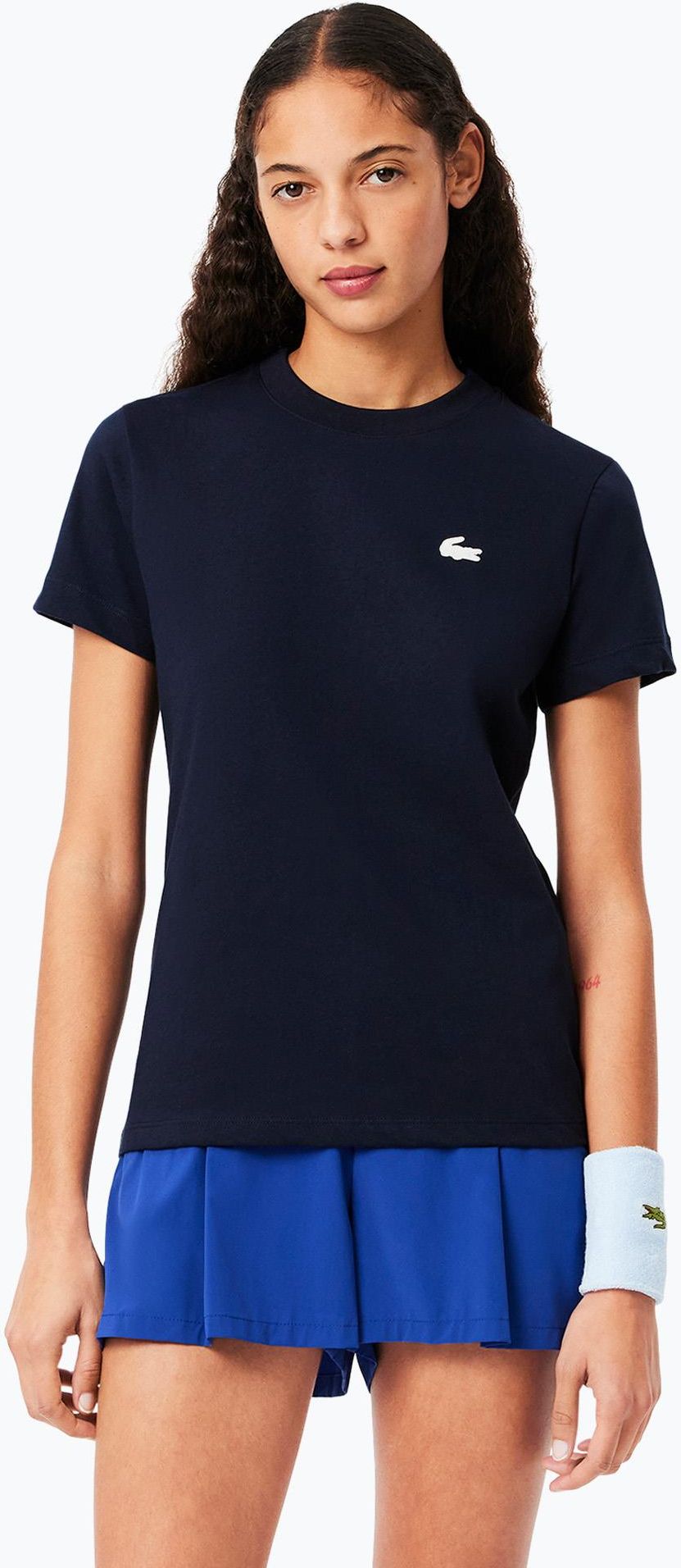 Koszulka damska Lacoste TF9246 navy blue zapewnia komfort użytkowania dzięki odpowiednio dobranym materiałom i przemyślanej konstrukcji. Model ten wyróżnia się wysoką oddychalnością, co przekłada się na wygodę zarówno podczas aktywności fizycznej, jak i na co dzień. Naturalny materiał bawełniany W modelu Lacoste TF9246 zastosowano materiał bawełniany, którego skład to 100% bawełna. Ten naturalny surowiec gwarantuje przyjemne uczucie w kontakcie ze skórą oraz bardzo dobrą przepuszczalność powietrza. Bawełna zapewnia także odporność na deformacje i zachowuje swój kształt nawet po dłuższym użytkowaniu. Funkcjonalność i komfort noszenia Okrągły dekolt oraz krótki rękaw sprawiają, że koszulka Lacoste TF9246 doskonale dopasowuje się do sylwetki i pozwala na pełną swobodę ruchów. Konstrukcja typu T-shirt znakomicie sprawdza się w codziennym użytkowaniu oraz podczas aktywności sportowej. Optymalna długość rękawa zwiększa wygodę w cieplejszych warunkach. Właściwości oddychające materiału Koszulka gwarantuje wysoką oddychalność, co wynika bezpośrednio z użycia czystej bawełny jako głównego materiału. Model Lacoste TF9246 skutecznie odprowadza wilgoć od ciała, zapewniając uczucie suchości i świeżości nawet przy intensywnym użytkowaniu. Oddychalność materiału to kluczowy atut podczas wysiłku fizycznego i w codziennych sytuacjach. Koszulka damska Lacoste TF9246 navy blue - cechy: Naturalny materiał bawełniany o składzie 100% bawełna; Bardzo dobra oddychalność zapewniająca komfort termiczny; Konstrukcja z okrągłym dekoltem dla wygody noszenia; Wykończenie typu T-shirt dla uniwersalnego zastosowania; Model dedykowany do codziennej aktywności i sportowego stylu; Przyjemna w dotyku powierzchnia materiału bawełnianego; Odporność na deformacje nawet po wielu praniach.
