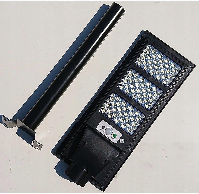 LATARNIA SOLARNA LED smd 360W, CZUJNIK RUCHU, PILOT I MOCOWANIE IP67Latarnia uliczna solarna LED smd 600W IP68, posiada wbudowany czujnik ruchu i zmierzchu, W zestawie panel słoneczny, pilot sterujący i mocowanie do słupka lub ściany fi40. Lampa ma kilka trybów pracy: timer, włączenie na stałe i automatyczny - po wykryciu ruchu zapala światło na 20s. Wszystkie rodzaje pracy są powtarzalne i działają po zmroku.Latarnia uliczna solarna LED smd 360W IP68Używając energii słonecznej, nie płacisz za żadne pieniądze ponownie. Bezprzewodowa instalacja, możesz zainstalować lampę dogodnym miejscu. Latarnia posiada czujnik ruchu, który po wykryciu ruchu aktywuje lampę na 20 sekund. Można też ustawić na czas od 2, 3, 4, 5 i 8 do godzin lub zapalić na stałe - zgaśnie o świcie lub po wyczerpaniu baterii. Każdy z wybranych trybów działa cyklicznie po zmroku aż do wyłączenia o świcie i aktywuje się ponownie po zmierzchu. Nie ma potrzeby codziennej aktywacji lampy pilotem.W zestawie pilot zdalnego sterowania.Pilot posiada standardowe funcie dla tego typu urządzeń czyli on/off, timer i regulację jasności lampy. Lampa potwierdza przyjęcie polecenia mignięciem. Pilot nie jest dedykowany do konkretnej lampy, więc można kilka latarni obsługiwać jednym pilotem.SPRZEDAJĘ KOMPLET GOTOWY DO MONTAŻU.Towar jest nowy, fabrycznie zapakowany !!!Zestaw zawiera: Latarnię solarną 360W z wbudowanym akumulatorem i panelem słonecznym, Pilota zdalnego sterowania, Elementy montażowe: (mocowanie do rury fi 40mm), baterie do pilota 2*AAA. Ten model latarni solarnej posiada możliwość demontażu panela słonecznego w celu wymiany baterii lub dokonania innych napraw. Nie jest to normą w tego typu konstrukcjach.Latarnia solarna jest mocowana do rury o średnicy fi 40 (rura do mocowania w komplecie)Tryby pracy: Działają jedynie po zmierzchu. timer - wyłączenie następuje po z pilota czasie zadanym czasie (2, 3, 4, 5 i 8 godzin) automat - zapala się po wykryciu ruchu na 20 sekund. off - wyłącza na stałe. on - włącza latarnie na stałe, wyłączy się o świcie lub po wyczerpaniu baterii. Specyfikacja: Czas ładowania: 7-8h - zależy od nasłonecznienia, Czas świecenia: 5-10h - zależny od ilości aktywacji i trybu pracy. latarnia o mocy: 360W Diody led: 360 LED Lumen: Max 36000LM wymiary lampy: 500*190*50mm Rozmiar panelu słonecznego: 170*460mm funkcja Auto on/off, czujnik ruchu typu PIR. Zastosowanie: ogród, garaż uliczny, ścieżka, taras przy basenie, podwórko Uwaga: bateria pilota zdalnego sterowania powinna być alkaliczna.Cechy: Możliwość demontażu panela słonecznego w celu wymiany baterii lub wykonania innych prac serwisowych. ładowanie akumulatora z panelu solarnego, łatwy montaż, brak przyłącza elektrycznego, diody led zasilane energią odnawialną, bateria wysokiej klasy o dużej pojemności, korpus z tworzywa sztucznego ABS zabezpieczony przed opadami deszczu. Wskaźnik ładowania - po montażu na słupie kontrola praktycznie niewidoczna.