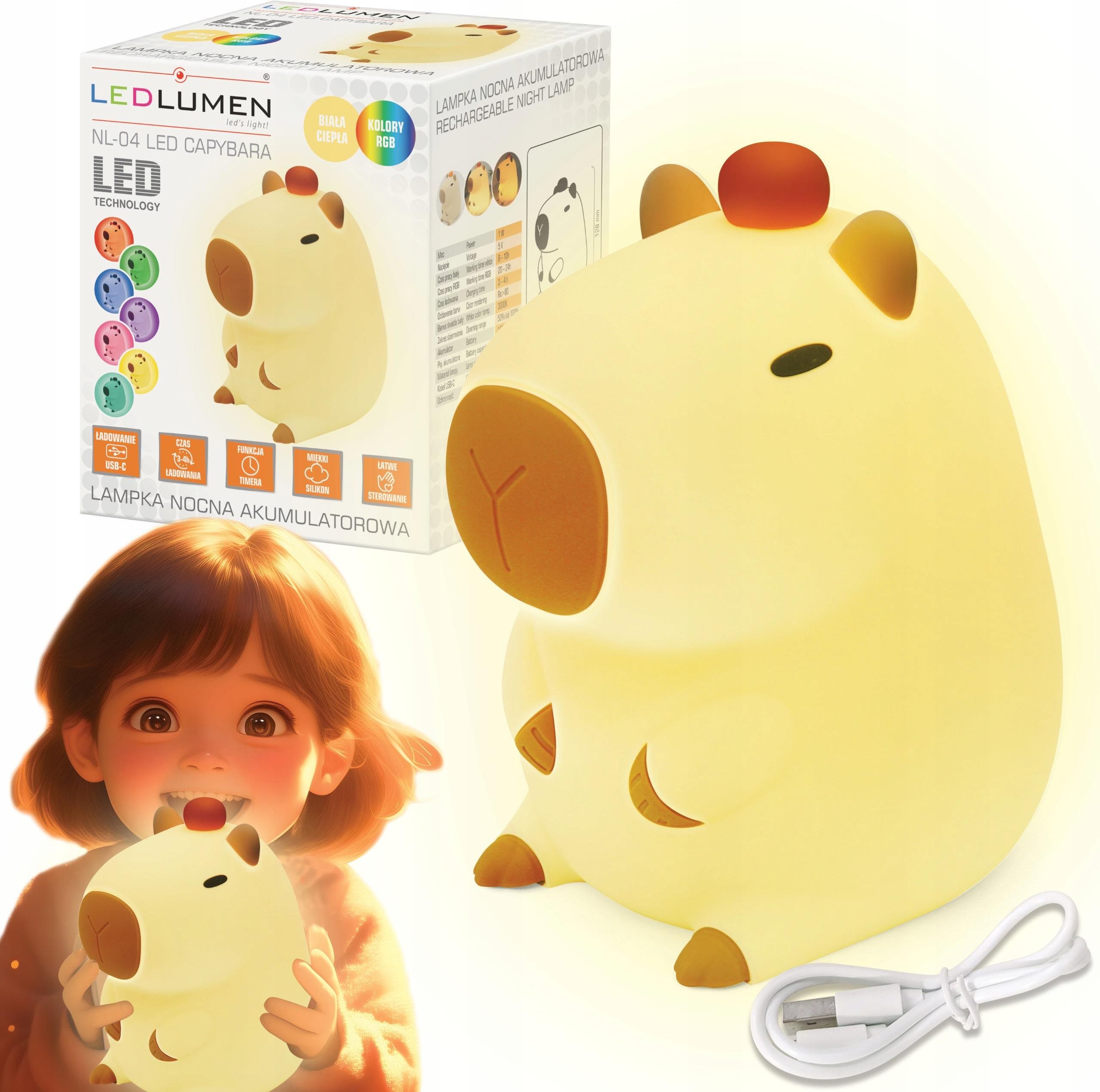 Ledlumen Lampka Nocna Led Dla Dzieci Kapibara Dotykowa Silikonowa Miękka Usb C Wwrgb (251090535) Warszawa