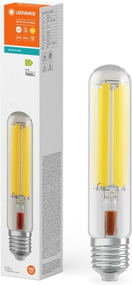 Żarówka LED NAV E40 41W = 100W 7000lm 2700K Ciepła Biała FILAMENT LEDVANCE GŁÓWNE CECHY PRODUKTU Nadaje się do pracy z konwencjonalnym układem zasilającym lub zasilanie bezpośrednie 230 V AC Bardzo wysoka skuteczność świetlna do 190 lm/W Taki sam wygląd jak tradycyjne lampy NAV z cylindryczną …