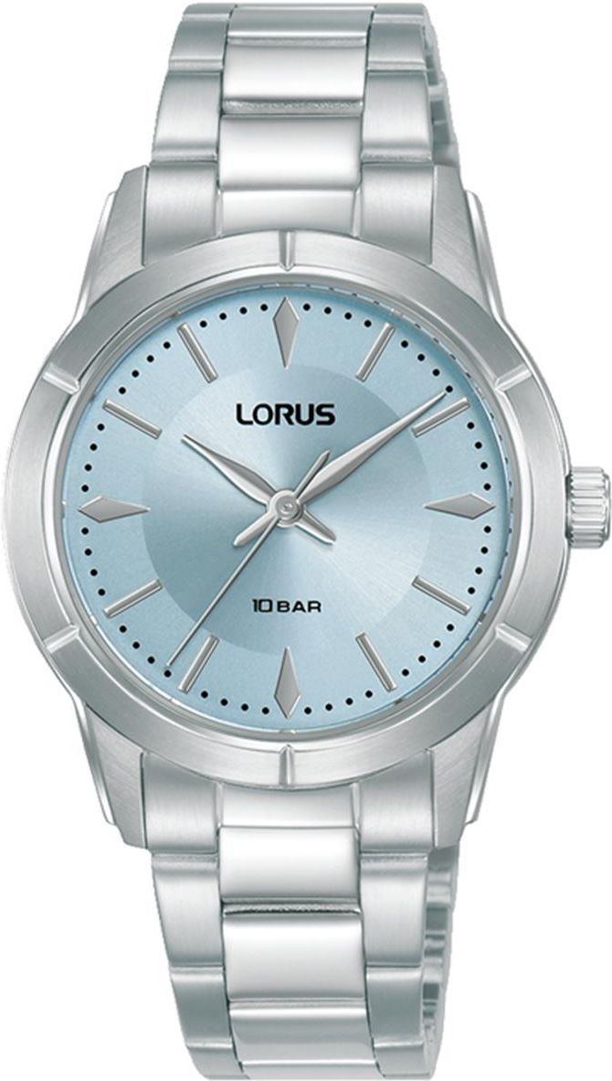 ODKRYJ WIĘCEJ NOWOŚCI LORUS Odkryj Zegarek Lorus RG225YX9 Lorus RG225YX9 to klasyczny zegarek damski na bransolecie, który zachwyca prostym, ale wyrafinowanym designem. Model ten wyróżnia się srebrną stalową kopertą i bransoletą w połączeniu z niebieską tarczą, co nadaje mu nowoczesnego charakteru i unikalnego uroku. Dzięki mechanizmowi kwarcowemu, zegarek gwarantuje niezawodność i precyzję działania, stając się praktycznym i stylowym dodatkiem na każdą okazję. Tarcza i szkło – funkcjonalność i ochrona Centralnym punktem zegarka jest elegancka niebieska tarcza, która pięknie kontrastuje z jasną oprawą koperty. Prosty układ indeksów i smukłe wskazówki zapewniają dobrą czytelność. Tarczę chroni odporne na zarysowania mineralne szkło, które świetnie sprawdza się w codziennym użytkowaniu, zachowując estetykę zegarka przez długi czas. Mechanizm - trwałość i niezawodność Sercem zegarka jest precyzyjny mechanizm kwarcowy, gwarantujący dokładny i niezawodny pomiar czasu. Mechanizm kwarcowy sprawia, że zegarek jest łatwy w obsłudze i nie wymaga częstego nakręcania, co jest wygodnym rozwiązaniem dla aktywnych. Koperta i bransoleta Model posiada kopertę o średnicy 32 mm, wykonaną z wysokiej jakości stali szlachetnej, podobnie jak jego dopasowana srebrna bransoleta. To połączenie sprawia, że zegarek wygląda stylowo, a jednocześnie jest odporny na czynniki zewnętrzne. Lorus RG225YX9 świetnie układa się na nadgarstku, będąc zarówno praktycznym, jak i modnym wyborem.