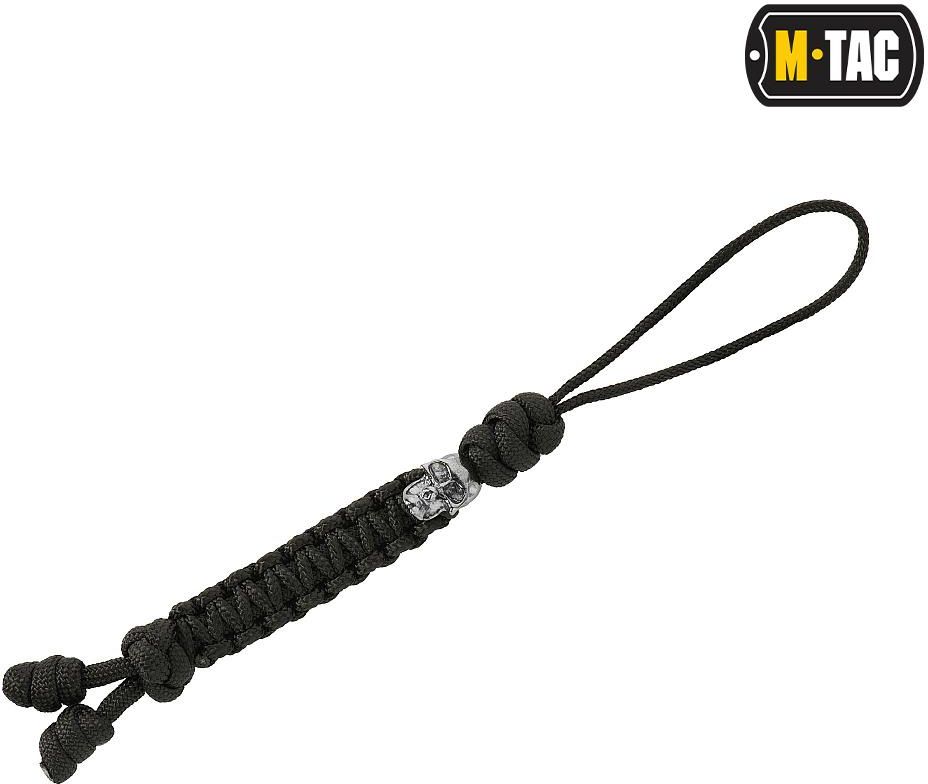 Brelok M-Tac Loopy Snake Skull - Black (MTC-TMLLSSK-BK) Praktyczny i oryginalny brelok wykonany z połączenia wytrzymałego paracordu oraz ozdobnej, metalowej czaszki. Brelok można w szybki i łatwy sposób podpiąć np. do szlufki spodni, troka plecaka lub paska od torby. Linka paracord po rozwinięciu może służyć na wiele sposobów, m.in.: troczenie i zabezpieczanie ekwipunku, bransoletki, troczki do latarek i noży, rękojeści do noży - oploty, linka mocująca - biwakowa, bransoletki survivalowe, sznurowadła, sznur do prania. Dane techniczne Materiał: 100% poliester Kolor: Black Waga: 7 g Producent: M-Tac, Ukraina