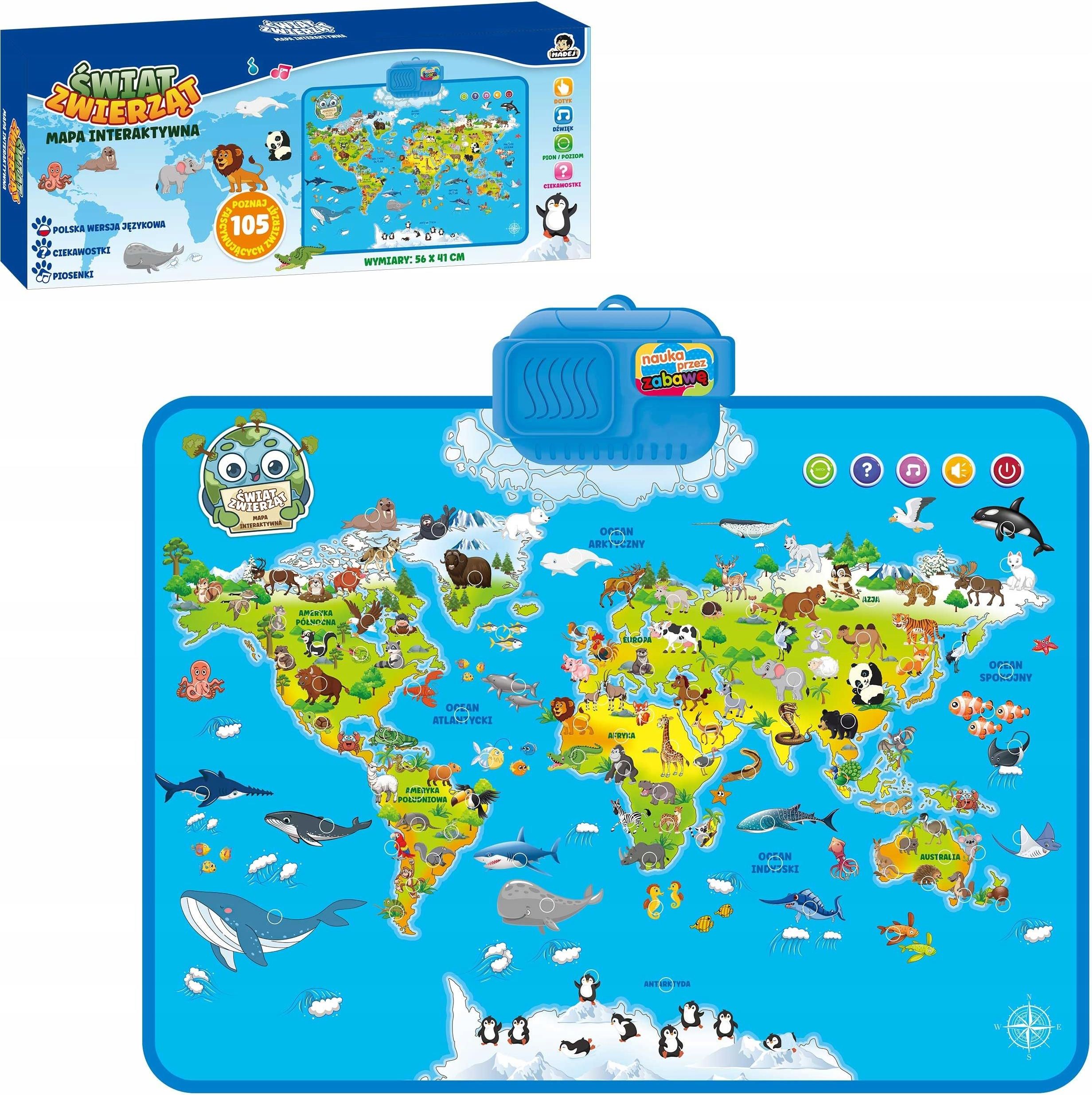 Madej Duża Interaktywna Mapa Świata Zwierzątka Zwierząt Dotykowa Mówi Po Polsku Warszawa