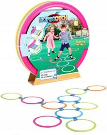 GRA ZRĘCZNOŚCIOWA W KLASY KOLOROWE OBRĘCZE + ŁĄCZNIKI TWIST ZESTAW 10 KOLOROWYCH OBRĘCZY + 10 ŁĄCZNIKÓW 10 elektrycznych, kolorowych obręczy Łatwe łączenie elementów przy pomocy łączników Zabawa rozwija zdolności motoryczne dziecka Do zabawy w domu i na dworze Zachęca do spędzania czasu na świeżym powietrzu Wykonane z wytrzymałego i elastycznego tworzywa Klasyczna gra bez rysowania kredą Bardzo wiele możliwości ustawienia okręgów Tradycyjna gra w klasy. Gwarantowana zabawa na długie godziny! Kultowa gra w klasy w nowym wydaniu! Zamiast rysować tor kredą, tworzymy go przy pomocy kolorowych obręczy połączonych w prosty sposób za pomocą specjalnych łączników. Krążki są elastyczne, wykonane z mocnego tworzywa. Istnieje bardzo wiele konfiguracji toru, wszystko zależy od naszej wyobraźni. Gra w klasy to nie tylko świetna zabawa, ale także wartościowe narzędzie edukacyjne, które wspiera rozwój motoryczny dziecka, oraz zachęca do aktywności fizycznej. Jednocześnie gra w klasy dostarcza dzieciom radości i przyjemności z aktywności na świeżym powietrzu Zestaw zawiera: 10 kolorowych obręczy 10 łączników Średnica krążka: 28 cm Wymiary opakowania: szer. 29 cm, wys. 29 cm, gł. 5 cm.