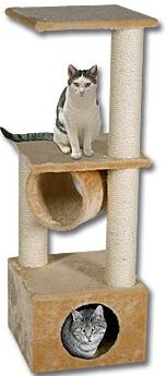 DRAPAK DLA KOTA TAMARA 109CM Każdy posiadacz kotka doskonale wie, że uwielbiają one ostrzyć pazurki ;) A to idealny drapak do szaleństw :) Drapanie to u futrzaków naturalna potrzeba i element higieny. Nie ma sposobu aby oduczyć kota tego procederu, dlatego aby ochronić meble i cenne przedmioty warto zaopatrzyć się właśnie w drapak. Drapak TAMARA nie zajmuje wiele miejsca. Ma klasyczna formę i design pasujący do różnego rodzaju wnętrz. Dzięki wyściełanemu pluszem podestowi zapewnia on kotu komfortowy wypoczynek oraz wygodny punkt obserwacyjny całego otoczenia :) Pluszowa podstawa zapewnia kotu miękkość i ciepło podczas zabawy. Wytrzymały, sizalowy słupek idealnie zaspokoi u kota naturalny instynkt drapania. Przytulna, wyściełana pluszem budka stanowi idealne miejsce do relaksu i drzemki. Osłania ona kota od nadmiaru bodźców zewnętrznych i zapewnia mu spokój. Dzięki trzem miejscom do odpoczynku, drapak TAMARA sprawdzi się w domu w którym mieszkają dwa, a nawet trzy koty. Wymiary drapaka TAMARA : - 36x36x109 cm (długość x szerokość x wysokość) - kolor: beżowy