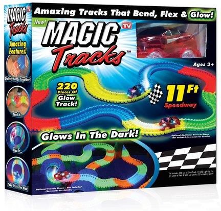 Magic Tracks to zupełnie nowy wymiar zabawy. Tor wyścigowy, który można ułożyć aż z 220 elementów jest bajkowo kolorowy, świeci w ciemności i można go dowolnie skręcać i wyginać! Daje to ogromne pole manewru dla wyobraźni dziecka przy budowaniu kolejnych torów. Po kompletnym złożeniu trasa ma …