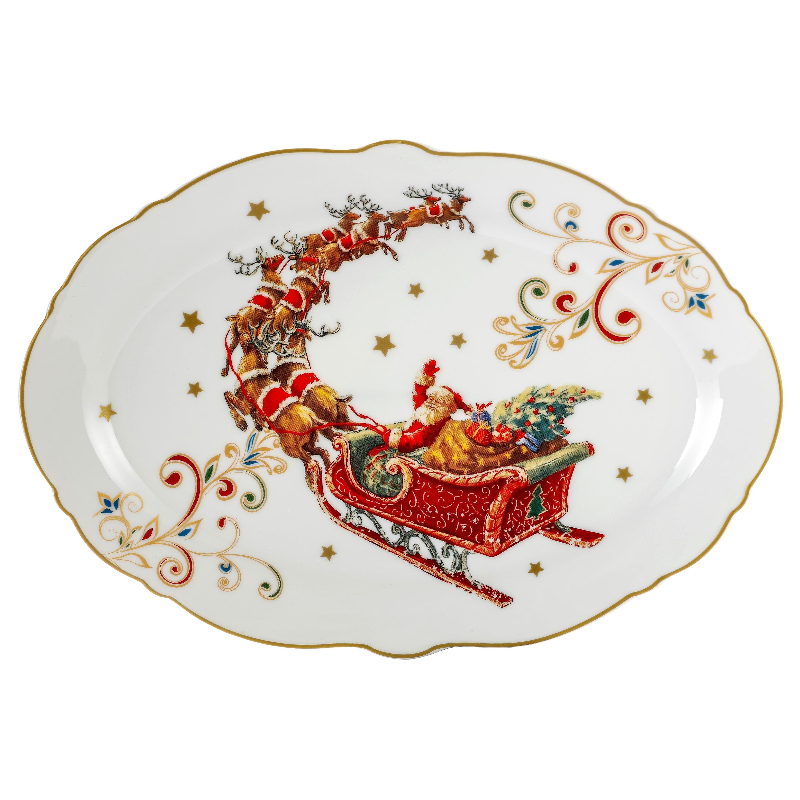 Półmisek owalny świąteczny talerz z Mikołajem magnoble (15027) Uroczy, świąteczny półmisek z serii Magnoble - Merry Christmas marki Marco Polo. Półmisek ma kształt owalny, wykonany został z wysokiej jakości porcelany. Biały talerz, który został uwydatniony pięknym złotym paskiem na rancie, z …