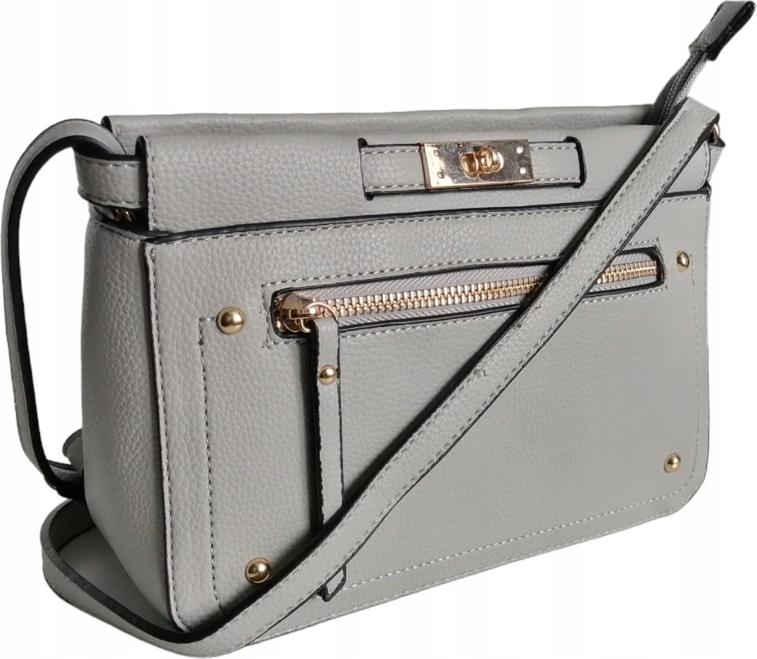 ✅ Charakterystyka przedmiotu kolor szary Materiał skóra ekologiczna Sezon Całoroczny Rodzaj Mały kuferek Damski, torebka damska, listonoszka damska na ramię Styl Miejski, na co dzień Komory 1 z zamkiem Kieszenie 4 (2 zewnętrzne z zamkiem, 1 wewnętrzna z zamkiem i kieszonka) ✅ Wymiary wysokość 16 cm szerokość 24 cm grubość 9 cm długość paska regulowana od 105 do 120 cm