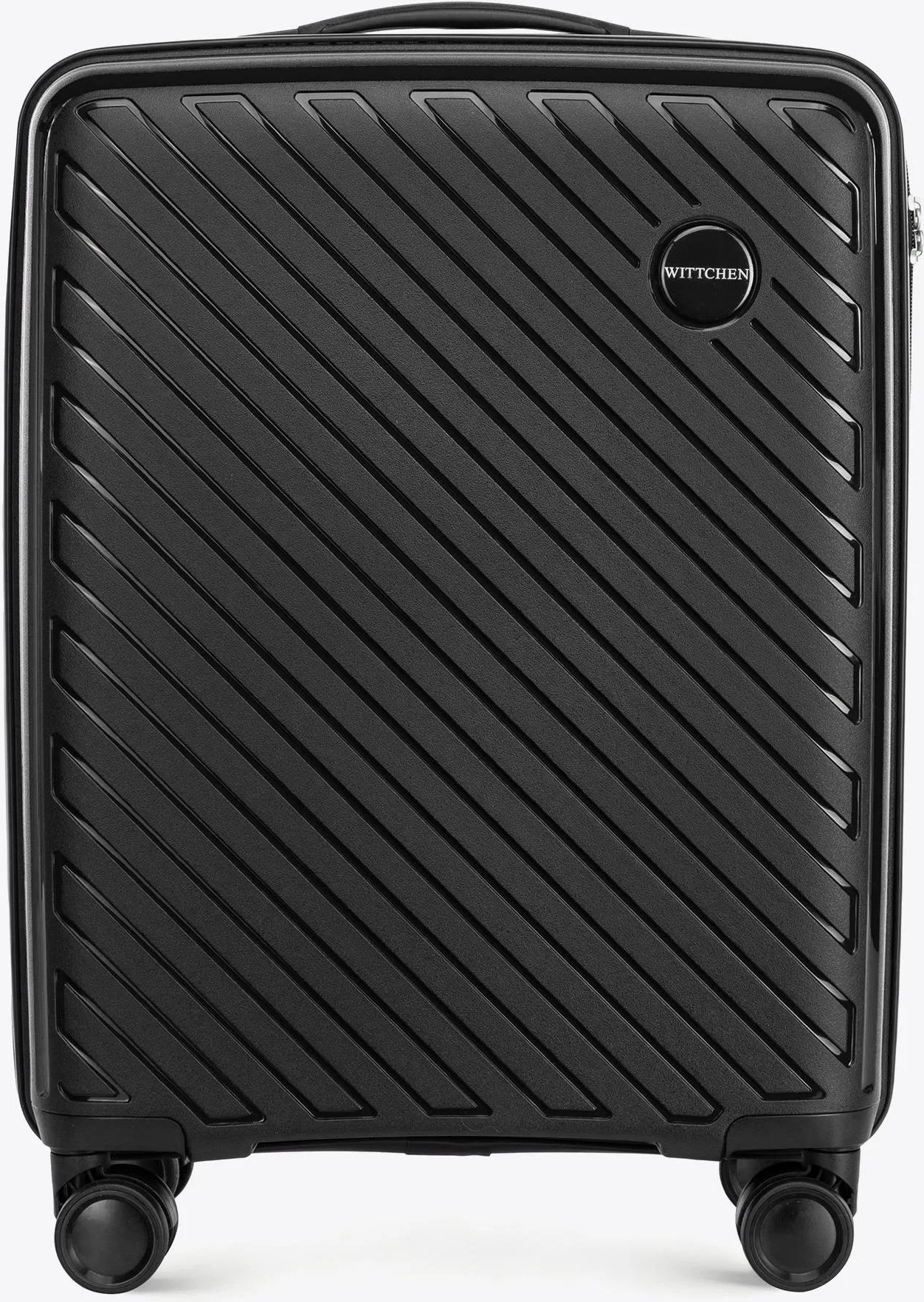 Mała walizka z polipropylenu w tłoczone paski czarna Warszawa