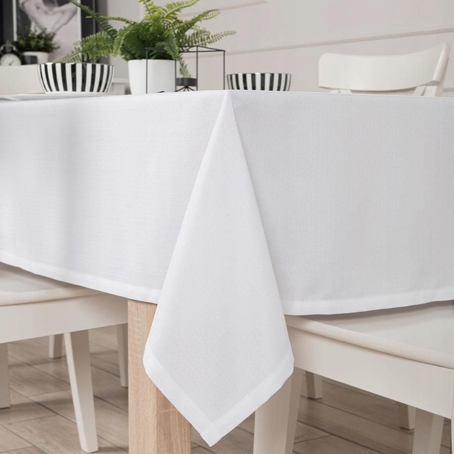 Biały obrus z wodoodpornej tkaniny 120x160 cm wykończony listwą Klasyczny, a zarazem stylowy obrus w białym kolorze sprawdzi się zarówno w minimalistycznych, jak i bardziej tradycyjnych aranżacjach, tworząc wyjątkową atmosferę. Dzięki właściwościom wodoodpornym dbanie o obrus będzie niezwykle proste i szybkie. Cecha ta sprawia, że wylane płyny nie wsiąkną w materiał, ale stworzą na jego powierzchni - łatwe do usunięcia kropelki. Brzegi nakrycia zostały wykończone listwą co podkreśla jego elegancję i styl, nadając mu wyrafinowanego wyglądu. Niezależnie od tego, czy planujesz elegancką kolację, czy codzienny obiad, ten obrus będzie idealnym wyborem, łącząc funkcjonalność z pięknym, wyrazistym wyglądem. Dzięki trwałemu materiałowi i odporności na wilgoć świetnie sprawdzi się również na zewnątrz w ogrodzie na tarasie czy balkonie. Cechy produktu Rozmiar: 120x160 cm Skład: 100% poliester Rodzaj tkaniny: wodoodporna Kształt nakrycia stołu: prostokątny Wykończenie boków: listwa Gramatura: 165 g/m2 Tolerancja wymiaru: +/- 3%