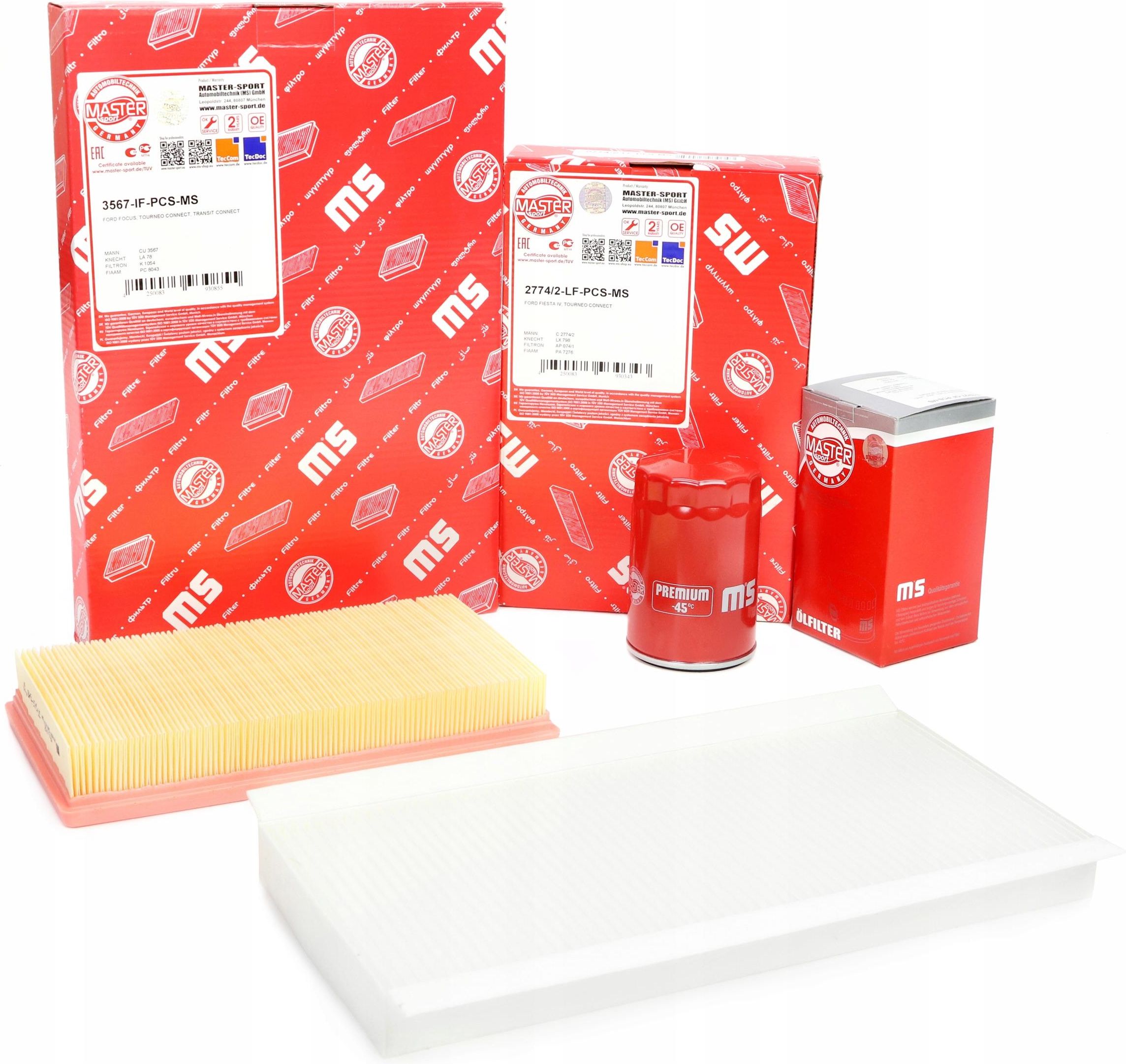 Kod produktu: 450001842 DANE TECHNICZNE: Filtr Powietrza: Długość [mm]: 267 Szerokość [mm]: 148 Wysokość [mm]: 45 Artykuł uzupełniający / informacja uzupełniająca: z dodatkowym filtrem do odpowietrzenia skrzyni korbowej Filtr Oleju: średnica zewnętrzna [mm]: 76 Artykuł uzupełniający / informacja uzupełniająca 2: z zaworem zwrotnym Ciśnienie otwarcia zaworu bocznikowego [bar]: 1 Średnica zewnętrzna 2 [mm]: 71 Wysokość [mm]: 123 Średnica wewnętrzna 2 [mm]: 62 Wymiar gwintu: 3/4-16 UNF Filtr Kabinowy: Długość [mm]: 350 Szerokość [mm]: 162 Wysokość [mm]: 30 Rodzaj filtra: filtr cząstek stałych Najlepsza jakość w zaskakującej cenie Master-Sport Germany! Zalety zakupu zestawu filtrów: SZYBKO - nie marnujesz czasu na dopasowywanie kilku filtrów TANIO - oszczędzasz na wysyłce DOBRZE - unikasz pomyłek --- UWAGA! --- W jednym modelu auta, mogą występować różne warianty części. Przygotuj niezbędne informacje o swoim samochodzie a następnie porównaj je z ofertą: marka model pojemność moc rok produkcji pełen numer nadwozia - VIN (17 znaków) W przypadku niepewności o właściwy dobór części, po zakupie zalecana jest weryfikacja wg numeru VIN. Zastosowania: FORD FOCUS I (DAW, DBW) 1.6 16V liftback | 1,596ccm 74 KW / 100 HP | 1998.10 - 2004.11 FOCUS I (DAW, DBW) 1.8 16V liftback | 1,796ccm 85 KW / 115 HP | 1998.10 - 2004.11 FOCUS I (DAW, DBW) 2.0 16V liftback | 1,988ccm 96 KW / 131 HP | 1998.10 - 2004.11 FOCUS I sedan (DFW) 1.6 16V sedan | 1,596ccm 74 KW / 100 HP | 1999.02 - 2004.11 FOCUS I sedan (DFW) 1.8 16V sedan | 1,796ccm 85 KW / 115 HP | 1999.02 - 2004.11 FOCUS I sedan (DFW) 2.0 16V sedan | 1,988ccm 96 KW / 131 HP | 1999.02 - 2004.11 FOCUS I Turnier (DNW) 1.6 16V Kombi | Clipper | Turnier | 1,596ccm 74 KW / 100 HP | 1999.02 - 2004.11 FOCUS I Turnier (DNW) 1.8 16V Kombi | Clipper | Turnier | 1,796ccm 85 KW / 115 HP | 1999.02 - 2004.11 FOCUS I Turnier (DNW) 2.0 16V Kombi | Clipper | Turnier | 1,988ccm 96 KW / 131 HP | 1999.02 - 2004.11 TOURNEO CONNECT 1.8 16V nadwozie wielkoprzestrzenne (MPV) | 1,796ccm 85 KW / 116 HP | 2002.06 - 2013.12 TRANSIT CONNECT (P65_, P70_, P80_) 1.8 16V Nadwozie pełne/minivan | 1,796ccm 85 KW / 116 HP | 2002.06 - 2013.12 Master-Sport-Automobiltechnik (MS) GmbH, to niemiecka firma będącą właścicielem marki produktów MASTER-SPORT. Dzięki współpracy w ramach MS EUROPEAN PRODUCTION-DISTRIBUTION AUTOMOTIVE GROUP firma oferuje szeroką gamę wysokiej jakości produktów dla każdego użytkownika jak również szereg innowacyjnych i opatentowanych rozwiązań.