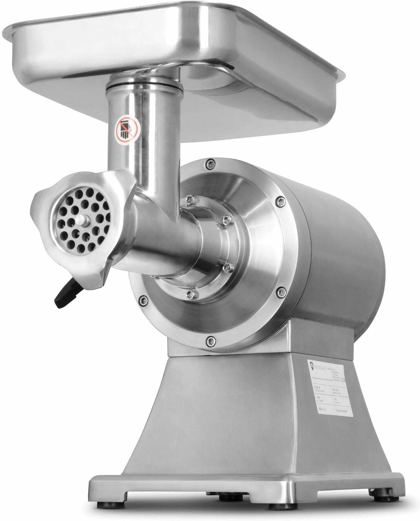 Opis: Profesjonalny wilk do mięsa Resto Quality o wydajności 100 kg/h Wysokiej jakości urządzenie przeznaczone do mielenia wszystkich rodzajów mięsa bez kości Idealna do przygotowywania wyrobów mięsnych, wędlin, kiełbas Maszynka do mielenia posiada funkcję rewersu co ułatwia odkręcenie sitka i wyciągnięcie całego mechanizmu tnącego W zestawie 2 sitka: 6 mm, 8 mm, lejek do kiełbas z polipropylenu oraz dwa ostrza Korpus wykonany ze specjalnego stopu aluminum Elementy mające styczność z żywnością są wykonane ze stali nierdzewnej Duża taca załadowcza wykonana ze stali nierdzewnej Ślimak maszynki wykonany ze stali nierdzewnej Popychacz wykonany z polipropylenu Zdejmowana gardziel znacznie ułatwiająca czyszczenie wilka Nie jest przeznaczony do pracy ciągłej Parametry techniczne: Wymiary [mm]: 195x435x390 Wydajność [kg/h]: 100 Moc [kW]: 0,45 Zasilanie [V]: 230 Waga [kg]: 21 Prędkość obrotowa [rpm]: 170/200