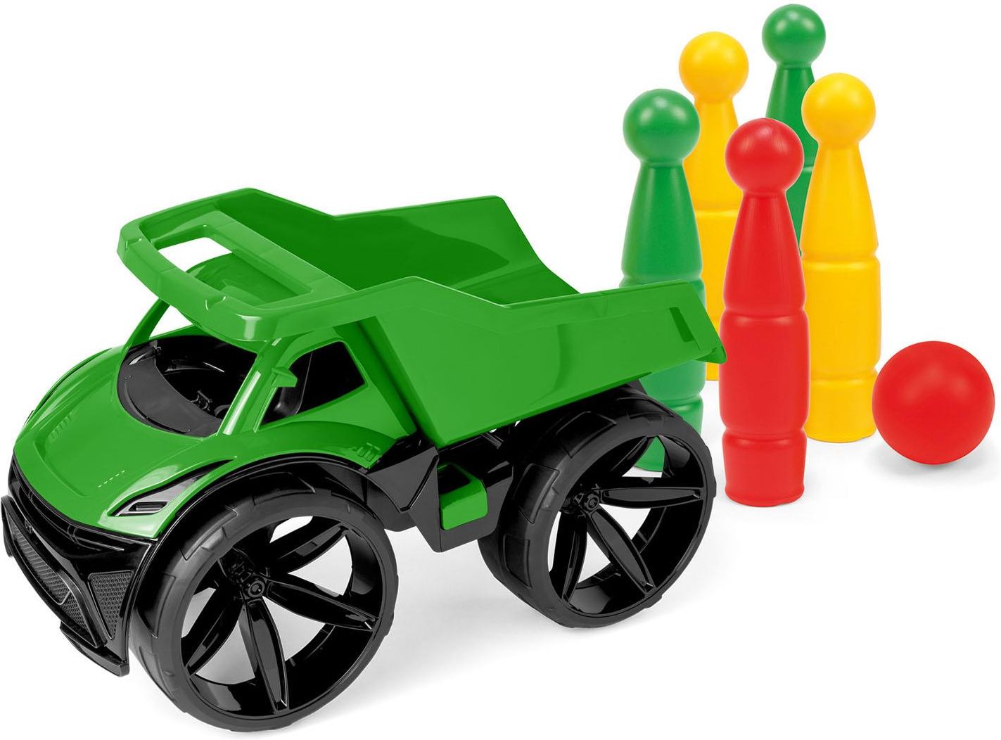 Maximus wywrotka zielona + kręgle Wader Maximus Wywrotka to duży i solidny pojazd, który doskonale sprawdzi się podczas zabawy w domu, ogrodzie czy piaskownicy. Wywrotka Maximus w połączeniu z kompletem 5 kręgli w kolorach żółtym, czerwonym i zielonym oraz piłką to doskonały zestaw dla aktywnych maluchów. Duży, solidny pojazd może przewozić kręgle na „tor bowlingowy”, a gdy dotrze na miejsce, czas rozpocząć ekscytującą grę w kręgle! Dzieci mogą ustawiać kręgle w różnych konfiguracjach i próbować strącić je za pomocą lekkiej piłki. Mogą też tworzyć własne scenariusze zabawy – np. organizować turniej kręgli lub używać wywrotki do transportu sprzętu sportowego na placu budowy. Dzięki intensywnym kolorom zabawki pobudzają wyobraźnię i zachęcają do ruchu. Solidna konstrukcja oraz wysokiej jakości materiały sprawiają, że zestaw jest trwały i idealnie nadaje się do zabawy w domu, ogrodzie czy na podwórku. To świetna propozycja dla małych budowniczych i sportowców, którzy uwielbiają aktywną i kreatywną zabawę! Maximus Wywrotka to duży i solidny pojazd, który doskonale sprawdzi się podczas zabawy w domu, ogrodzie czy piaskownicy. Dzięki imponującym rozmiarom i wytrzymałej konstrukcji, dzieci mogą przewozić piasek, ziemię lub inne materiały, rozwijając przy tym swoją kreatywność i zdolności manualne. Ruchoma skrzynia ładunkowa ułatwia wyładunek, co dodaje realizmu i sprawia, że zabawa staje się jeszcze ciekawsza. Maximus Wywrotka wyróżnia się: nowoczesnym designem, solidną lekką konstrukcją, nowoczesną linią nadwozia z dużymi matowymi kołami oraz pięknym wykończeniem detali. Dodatkowo posiada ruchomy otwierany kiper oraz wygodny uchwyt co pozwala na urozmaiconą i realistyczna zabawę, można wykorzystywać go do przewożenia piasku lub innych zabawek. Pojazd ma 59 cm długości. Maximus Wywrotka dostępna jest w kolorach: czerwonym, zielonym, żółtym, granatowym, różowym i pomarańczowym. MAXIMUS to nowa seria nowoczesnych pojazdów przyszłości, synonim nowoczesności, śmiałego designu i wysokiej jakości wykonania właściwej pojazdom klasy Premium – dzieci je pokochają! Co wyróżnia nową linię pojazdów MAXIMUS? Futurystyczny wygląd Solidna lekka konstrukcja Kontrastujące kolory i tekstury Interaktywne elementy Edukacyjna wartość Estetyka i detale OSTRZEŻENIE! Przeznaczone dla dzieci w wieku ponad 12 miesięcy. Nie służy do przewożenia dzieci. Możliwość wypadnięcia. Ryzyko uszkodzenia ciała. Zabawkę należy myć pod bieżącą wodą z użyciem mydła dla dzieci. Proszę usunąć wszystkie elementy opakowania przed podaniem zabawki dziecku. Zachowuje się prawo do zmiany kolorów i szczegółów technicznych. Zachowaj niniejszą informację. Grupy produktów: Maximus Przeznaczenie: Uniwersalne Opakowanie jednostkowe - szerokość [cm]: 32,5 Opakowanie jednostkowe - wysokość [cm]: 40,0 Opakowanie jednostkowe - długość [cm]: 60,0 Opakowanie jednostkowe - waga [kg]: 3,04 Wiek: 1+