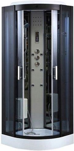 Kabina prysznicowa niski brodzik zabudowana 110x110 cm. Kabina z hydromasażem czarne wykończenie 110x110 półokrągła. Kabina prysznicowa Mazur Spa model MO-0513DB. Kabina prysznicowa ze składanym siedziskiem. Kabina prysznicowa zamknięta z dachem 110x110.