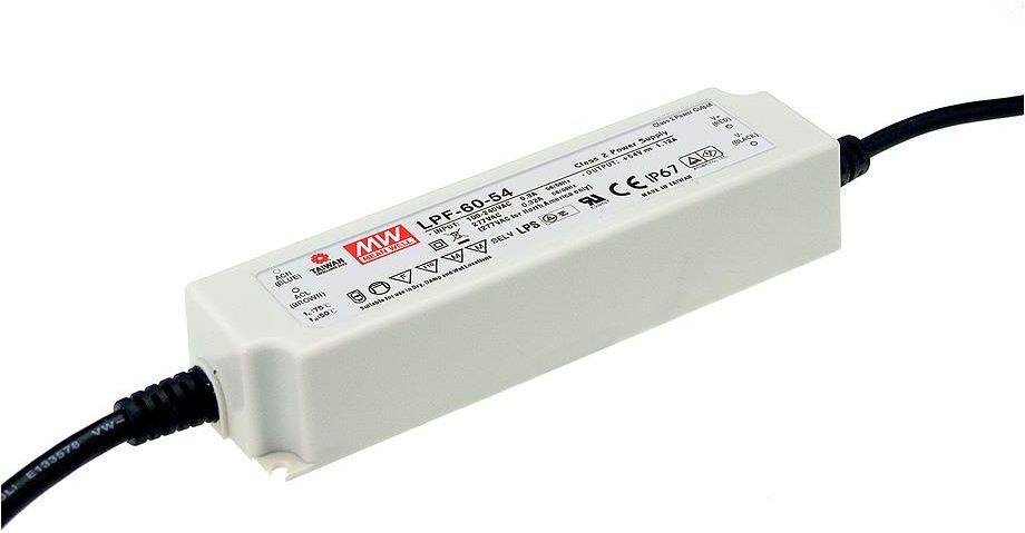 Zasilacz LED hermetyczny IP67 Mean Well 24V 2,5A z PFC LPF-60-24 Przemysłowe zasilacze, przetwornice i ładowarki Firma Mean Well Enterprises Co., Ltd. jest jednym z wiodących producentów urządzeń zasilających na świecie. Posiada ona 5500 standardowych modeli w ofercie oraz bazuje na ponad 35 letnim doświadczeniu w projektowaniu, tworzeniu oraz zaopatrywaniu klientów w urządzenia zasilające. Firma Mean Well oferuje klientom kompleksowe oraz niezawodne rozwiązania do bardzo szerokiej gamy zastosowań. SHEMECK jest autoryzowanym subdystrybutorem produktów Mean Well w Polsce. Ze względu na pojawiające się wątpliwości w zakresie zasilaczy Mean Well, informujemy, że firma Mean Well produkuje zasilacze wyłącznie pod swoim znakiem handlowym, bez powiązania z innymi znakami towarowymi. Zasilacze do systemów oświetleniowych LED z funkcją ściemniania IP67 szeroki zakres napięcia zasilania: 90~305VAC, 127~431VDC szczelna plastikowa obudowa zgodna z normą IP67 (opcja w LPF-16(D)) stałe napięcie wyjściowe niezależnie od obciążenia zabezpieczenie przeciwzwarciowe, przeciążeniowe, nadnapięciowe, termiczne aktywny układ PFC odporność na przepięcia 300VAC przez 5 sekund izolacja klasy II funkcja ściemniania 3 w 1 (1~10VDC, PWM, rezystancja) chłodzenie przy otwartym obiegu powietrza temperatura pracy -40~+70°C zgodność z szeregiem norm i certyfikatów sprawność do 90% niskie koszty, wysoka niezawodność 3 lata gwarancji Cechy zasilacza • stałonapięciowy (CV) • napięcie wyjściowe 24V DC • szeroki zakres napięcia wejściowego 90-264V AC • maksymalny prąd wyjściowy 2.5A • w pełni izolowana obudowa plastikowa z zaczepami montażowymi • małe gabaryty • klasa szczelności IP67 • pobór mocy w czasie czuwania < 0.5W (230V AC) • odpowiedni do taśm LED • wysoka jakość wykonania • zabezpieczony przed przeciążeniem, zwarciem, przepięciem, przegrzaniem Wysoka jakość i energooszczędność Budowa zasilacza oparta jest na wysokiej jakości elementach, które gwarantują energooszczędność i długą żywotność. Zasilacz utrzymuje stabilne napięcie wyjściowe 24V DC niezależnie od obciążenia. Posiada ochronę przed zwarciem, przeciążeniem, przepięciem. Jest zgodny z większością norm i certyfikatów. Wysoka wydajność 86% to niskie rachunki za prąd. Decydując się na zasilacz nie należy oszczędzać na jakości i efektywności, bo to najważniejszy element instalacji oświetleniowej.