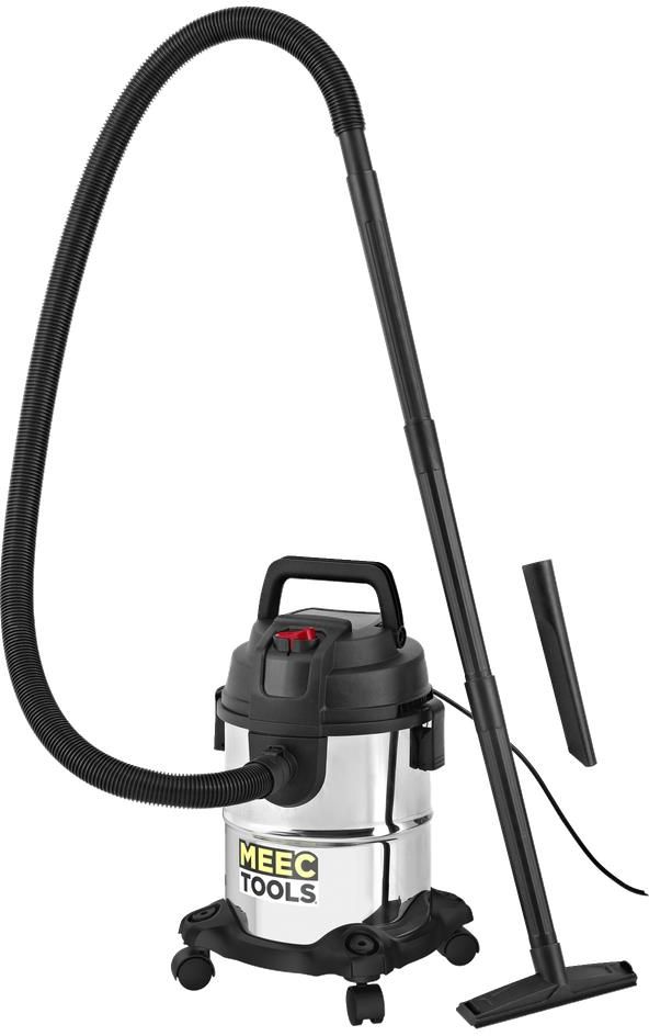 Kompaktowy odkurzacz przemysłowy do zanieczyszczeń suchych i mokrych! Pojemnik ze stali nierdzewnej, uniwersalne końcówki i funkcja dmuchawy.